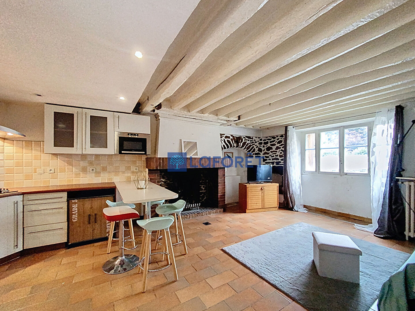 Elle se compose d'un séjour chaleureux avec cheminée et d'une cuisine ouverte équipée, au 1er étage une grande chambre, une salle d'eau et WC indépendant , ainsi qu'un bureau sur palier.