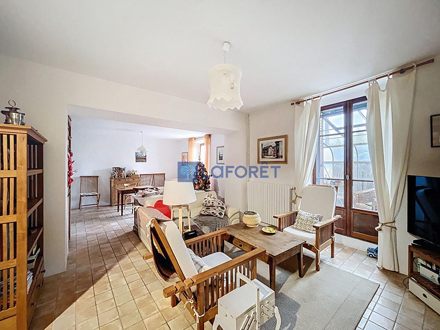 Il se compose d'un séjour lumineux ouvrant sur une terrasse aménagée avec serre, idéale pour profiter de l'extérieur toute l'année, ainsi que d'un jardin privatif parfait pour les moments de détente.