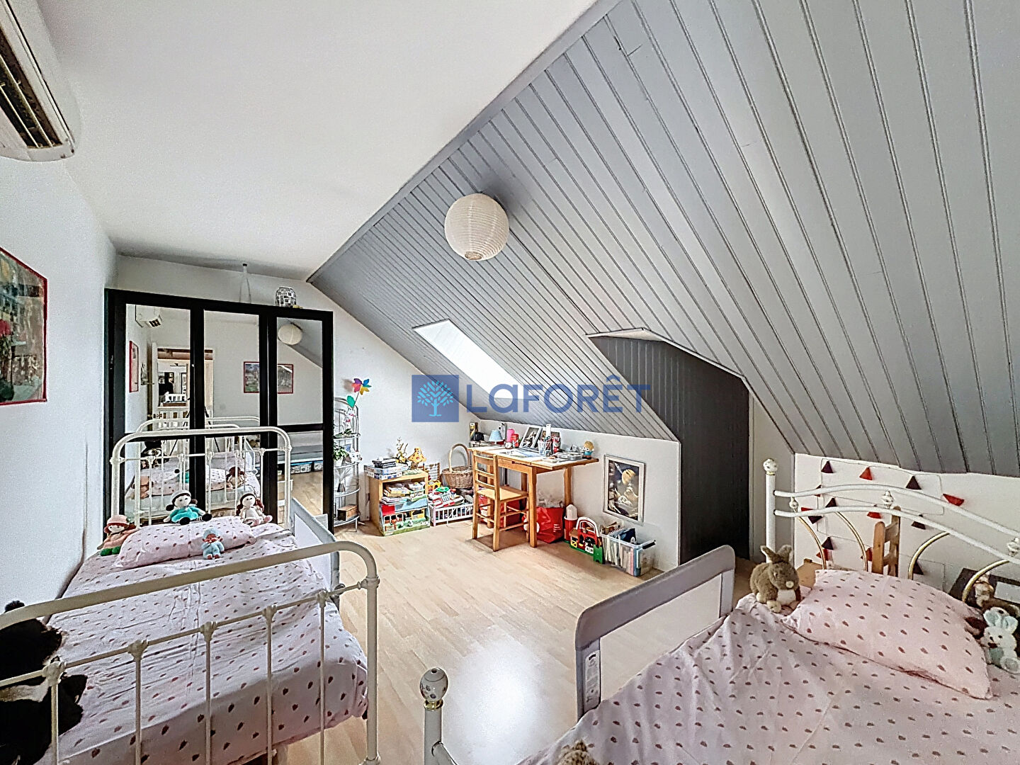 À l'étage, un palier de 40 m² accueille une grande salle de jeux avec rangements, deux chambres supplémentaires dont une disposant d'une pièce polyvalente pouvant devenir un dressing ou un espace ado et une salle d'eau avec wc.