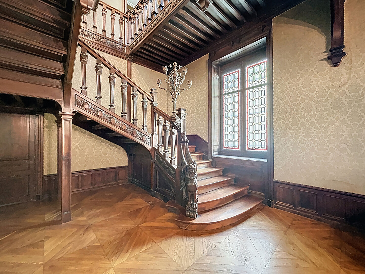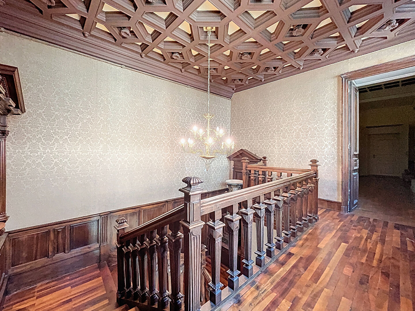 Dès l'entrée, le ton est donné : un espace de vie spectaculaire de plus de 50 m², sublimé par une hauteur sous plafond dépassant les 3 mètres, offrant une sensation de volume et de lumière remarquable. Un lieu de réception idéal, alliant cachet et confort.