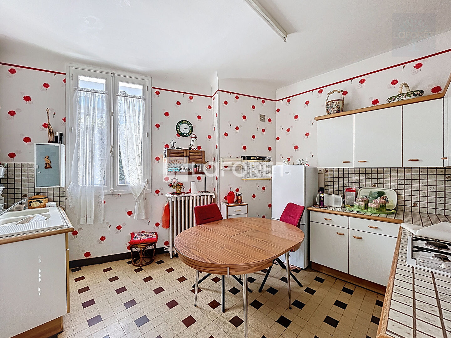 À l'étage, un salon séjour lumineux, une cuisine aménagée, deux chambres spacieuses et un WC complètent l'espace de vie.