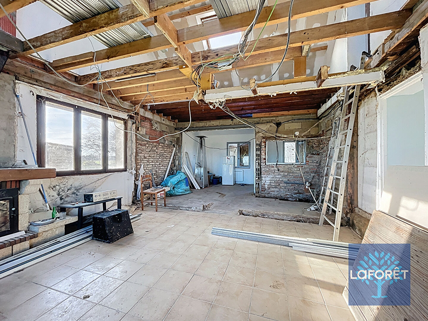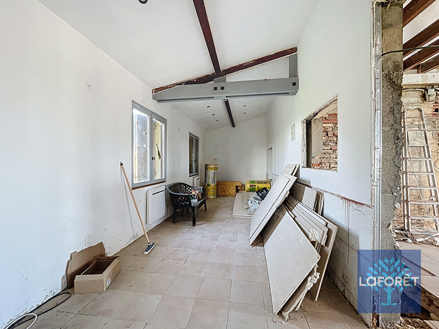 Travaux à prévoir (électricité, plomberie, finitions, assainissement non conforme).