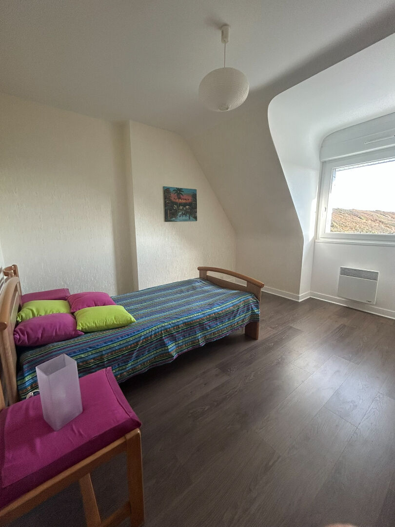 À l'étage, distinguez la mer et les Tas de Pois, les trois chambres exposées plein sud bénéficient de grands placards et d'une salle d'eau.