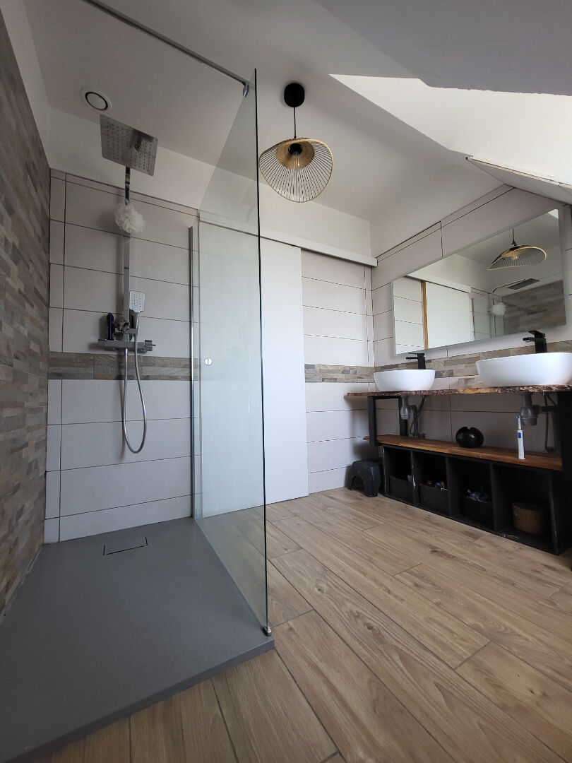 À l'étage, trois grandes chambres lumineuses, une salle d'eau, un dressing ainsi qu'une suite parentale vous offriront tout le confort nécessaire pour une vie de famille.