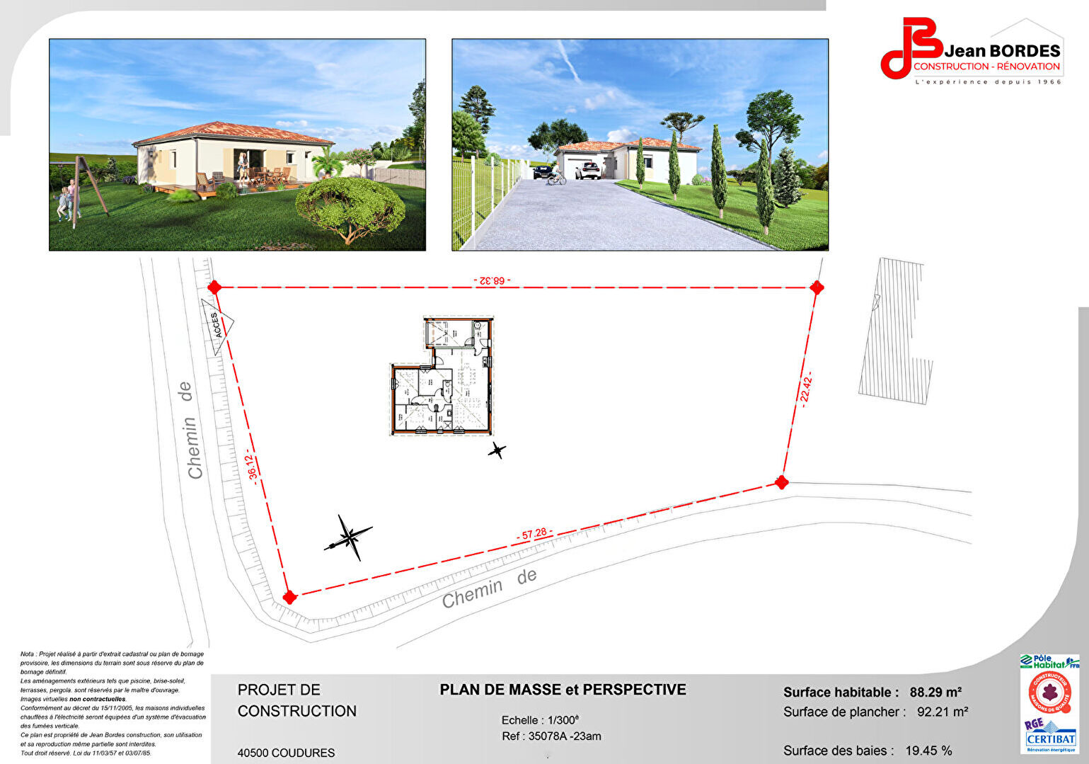 Ce terrain est libre de tout constructeur et nous pouvons aussi vous proposer des projets comme celui présenté dans l'annonce créé avec un de nos constructeurs partenaires Jean Bordes à Saint Sever