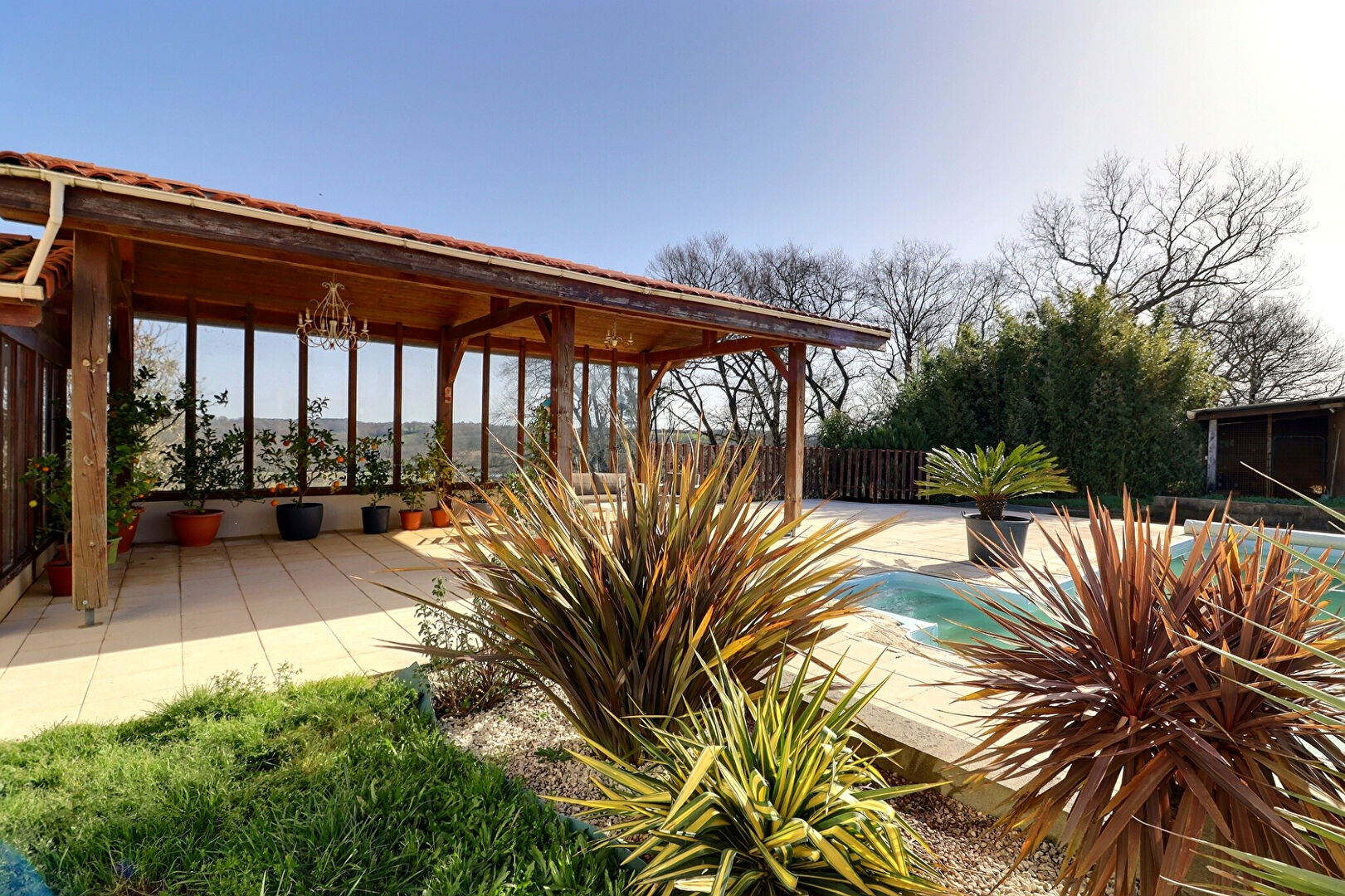 Implantée sur un terrain de1 hectare 7, la propriété bénéficie d'une vue depuis sa terrasse abritée dominante dégagée sur la campagne environnante, un cadre rare et recherché.
