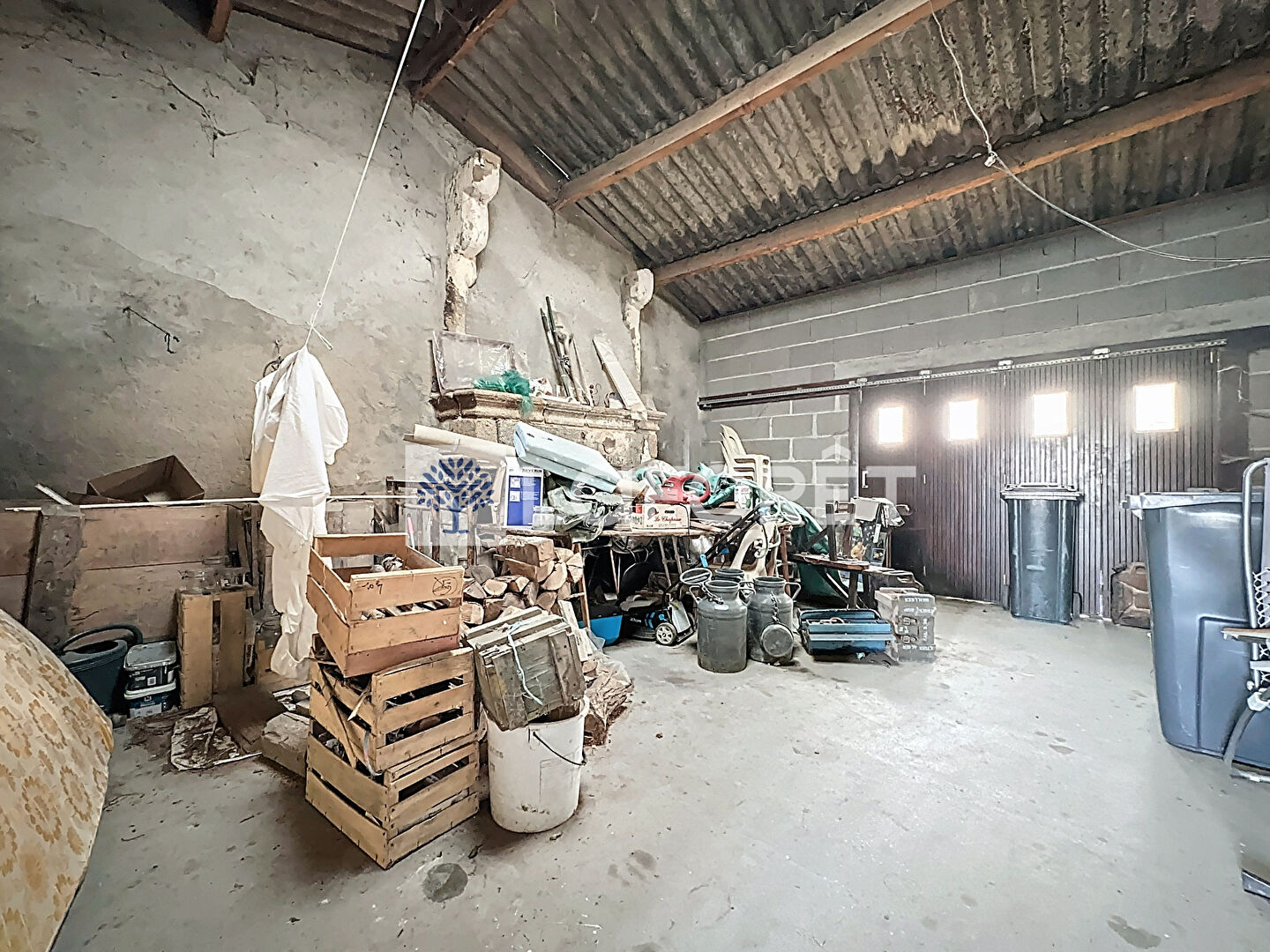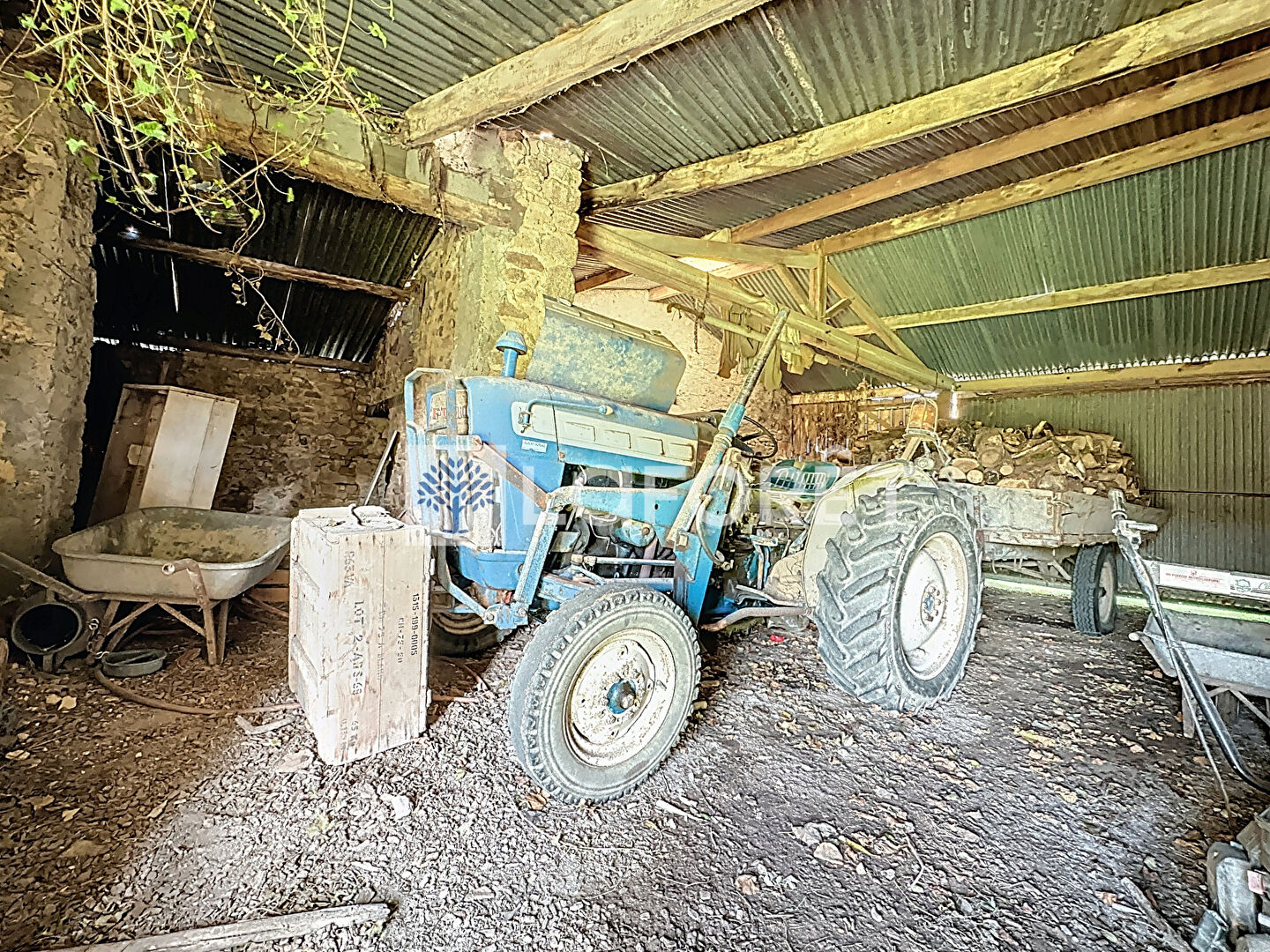 Côté dépendances, le bien comprend un garage et un hangar, offrant de nombreuses possibilités de stationnement, de stockage ou d'aménagement selon vos projets.