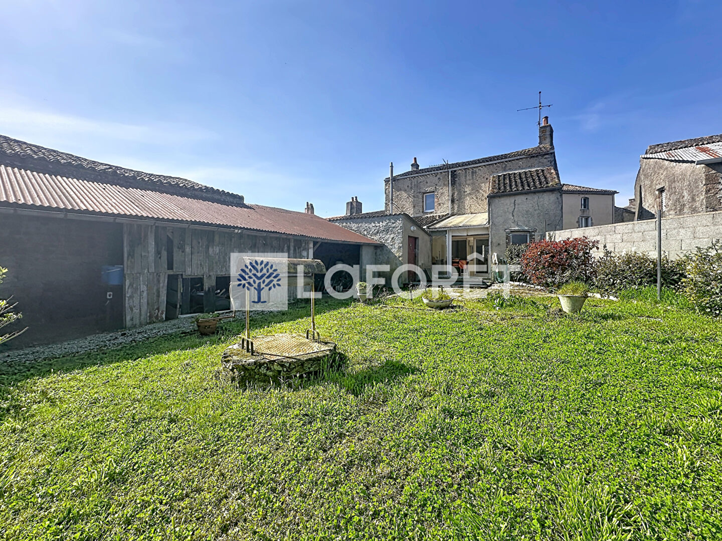 La maison dispose également d'un garage attenant, un atout rare en centre-bourg, ainsi que d'un terrain avec puits, idéal pour l'entretien extérieur ou un jardin.