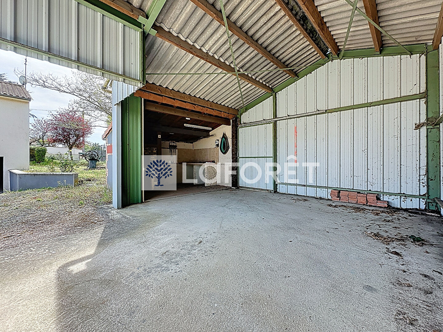 À l'extérieur, la propriété dispose d'un hangar d'environ 48 m² avec car-port ouvert et espace four ainsi que d'un garage indépendant d'environ 40 m², permettant le stationnement de plusieurs véhicules et de nombreuses possibilités de stockage.