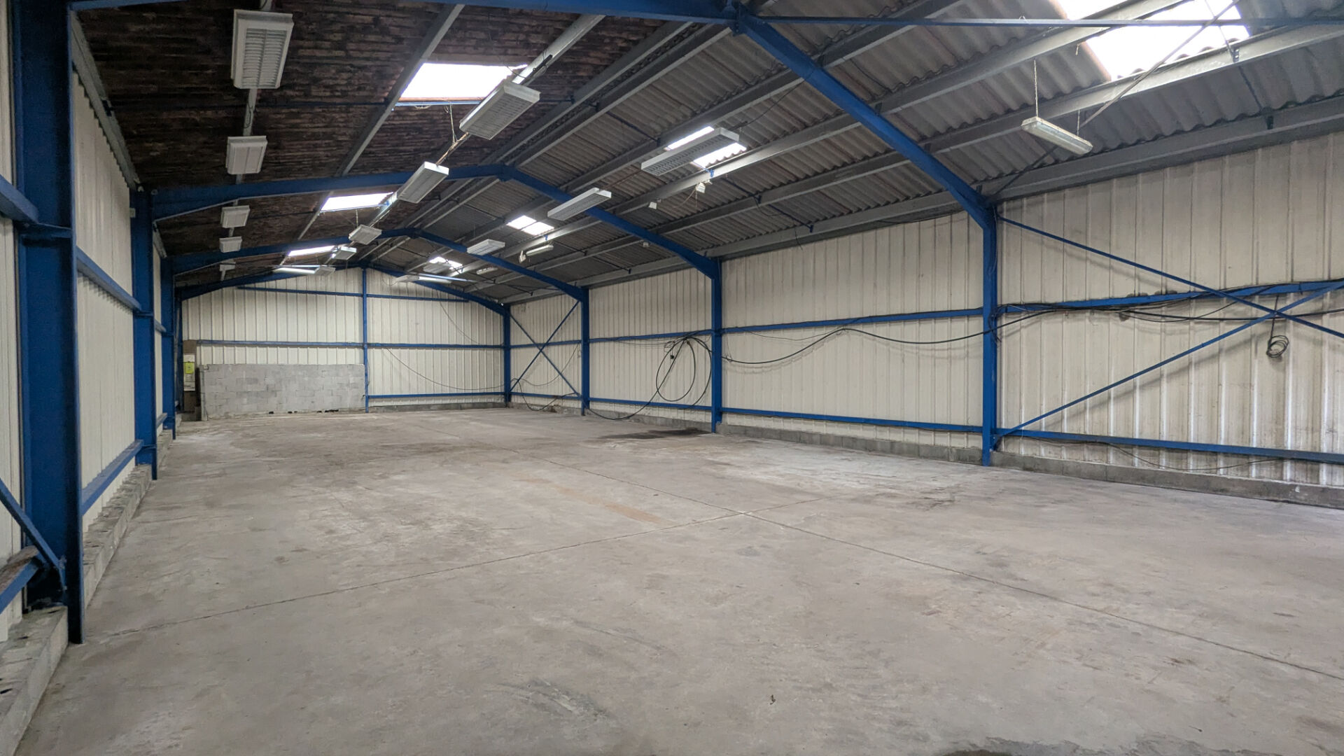 Le bien comprend un hangar offrant un vaste volume intérieur permettant une utilisation flexible selon les besoins d'une activité artisanale, de stockage ou logistique. L'espace entièrement ouvert facilite l'organisation des zones de travail, l'installation de matériel ou l'entreposage de marchandises. L'accès par une large porte permet l'entrée de véhicules utilitaires et rend le bâtiment particulièrement fonctionnel pour une exploitation professionnelle.