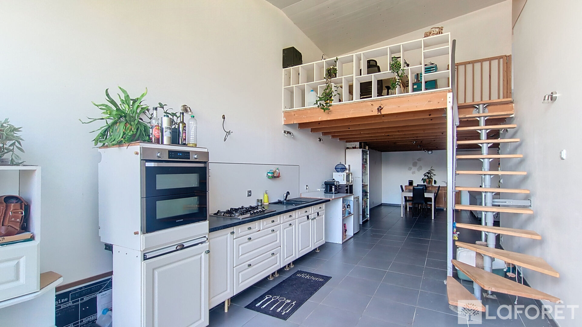 Dès l'entrée, vous serez séduit par sa pièce de vie baignée de lumière, sublimée par une grande baie vitrée en arc et une belle hauteur sous plafond.