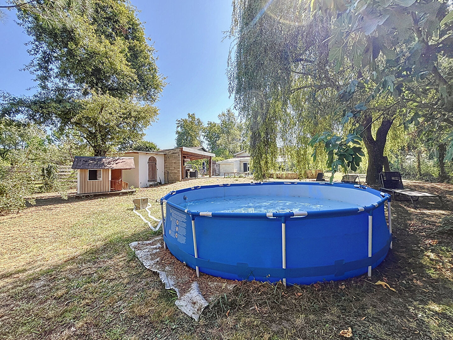 À l'extérieur, vous profiterez d'un jardin clos et arboré, sans vis-à-vis, idéal pour les moments de détente en famille ou entre amis. Une piscine est présente, avec un liner à remplacer, accompagnée d'un pool house et d'une terrasse en bois . Un garage complète ce bien, offrant un espace de stationnement ou de stockage complémentaire.