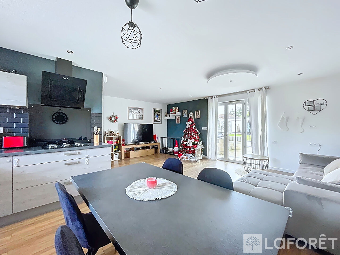Il propose une pièce de vie lumineuse avec cuisine ouverte équipée, quatre chambres et une salle d'eau récente. Le chauffage combine pompe à chaleur et poêle à granulés, assurant confort et maîtrise des consommations (DPE : C/A).