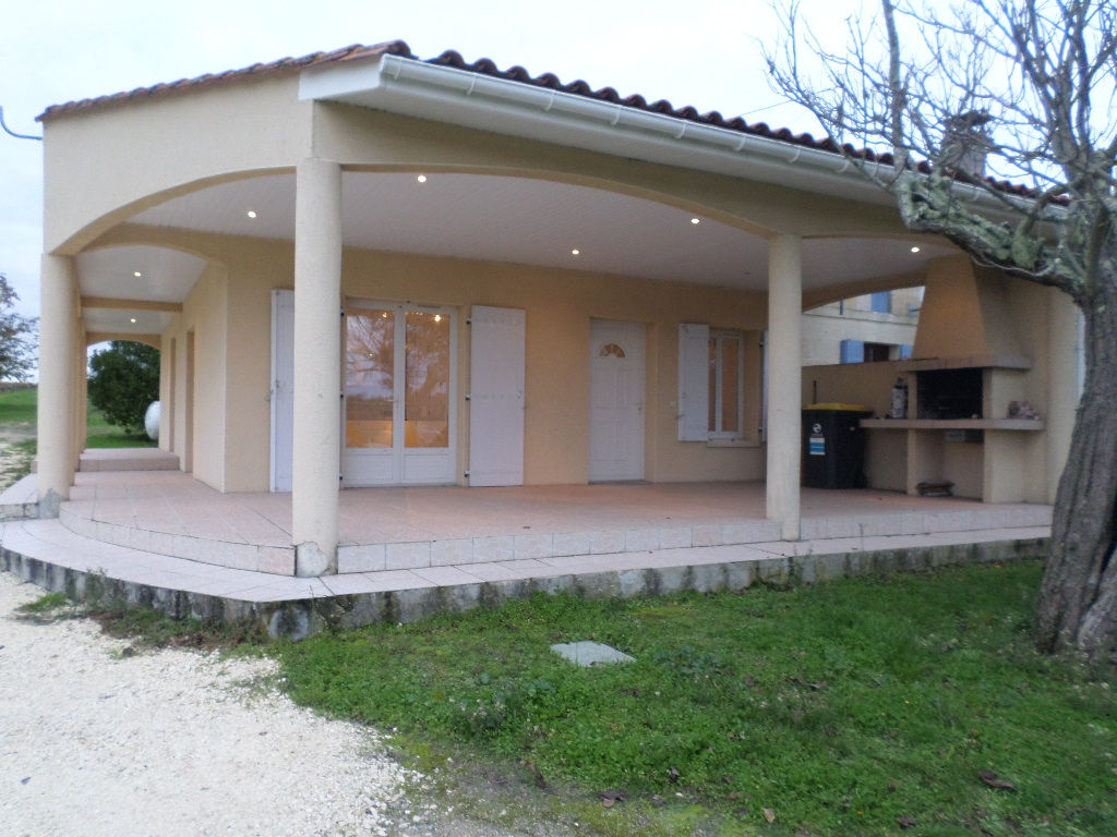 A 15 min au nord de St André de Cubzac à St Vivien de Blaye Au milieu des vignes Maison mitoyenne, comprenant grande terrasse couverte avec barbecue, cuisine ouverte aménagée équipée (hotte plaques four) sur salon, trois chambres dont une suite parentale comprenant sdb et wc indépendant, une salle d'eau, un second wc indépendant, une arrière cuisine aménagée et un cellier. Avec jardinet privatif non clôturé et abri de jardin.