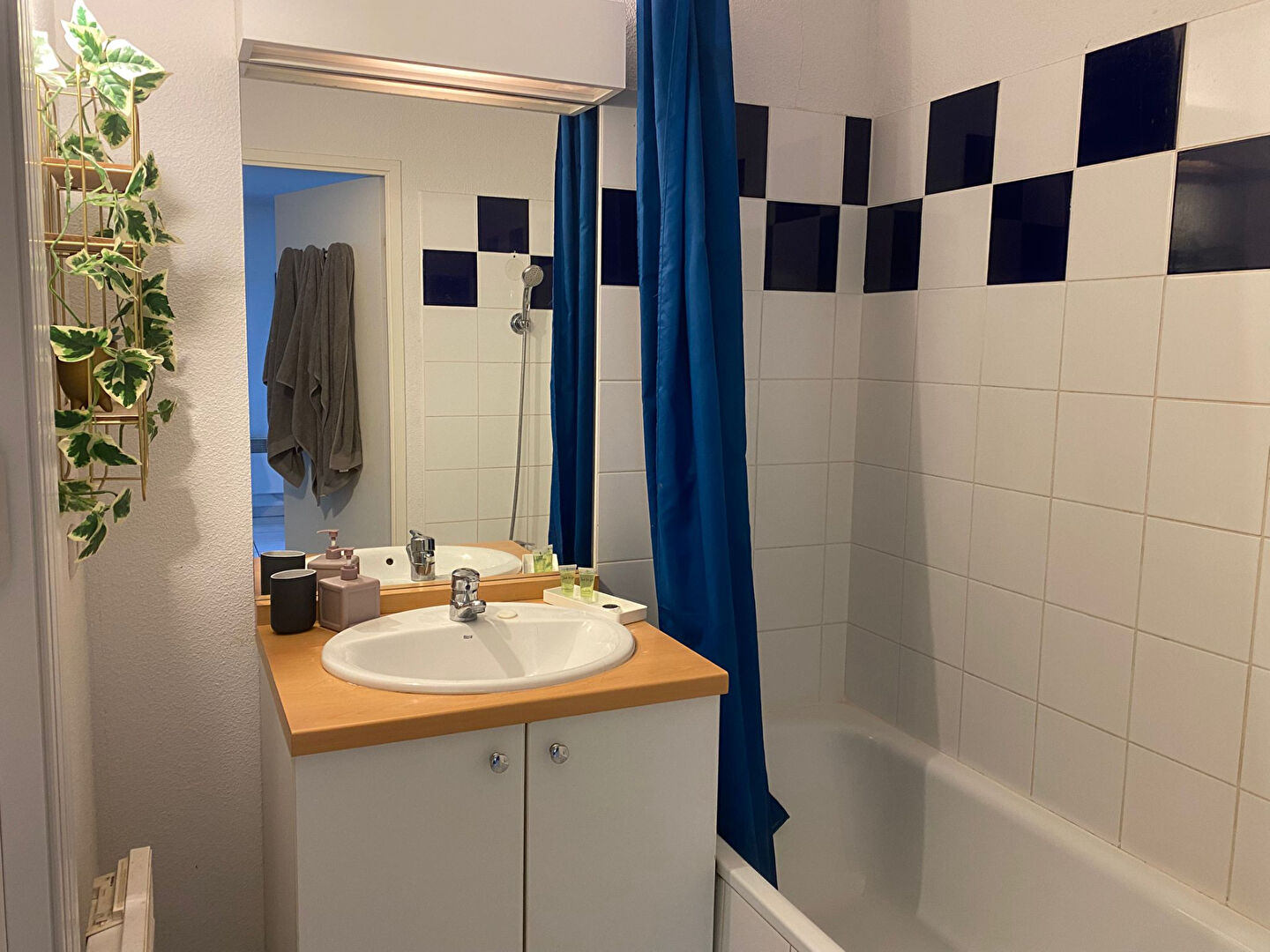 Appartement en rez de jardin loué meublé, comprenant une belle pièce de vie, avec espace cuisine ouverte aménagée et totalement équipée, placards de rangement, une chambre avec placard, une salle de bains et wc indépendant. Un jardin privatif; Disponible début Mai.