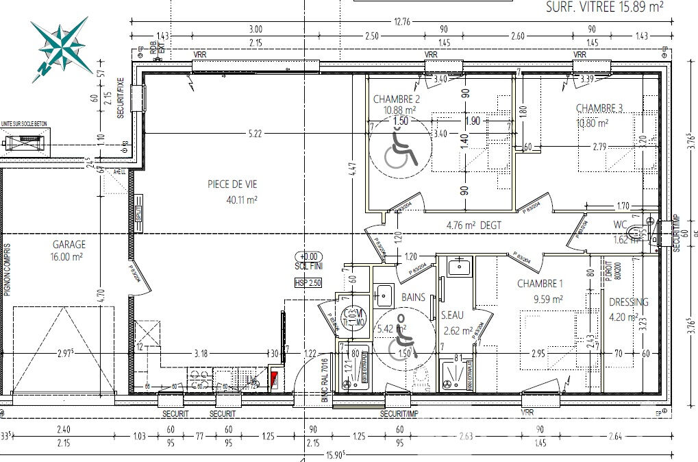 90 m² • 4 pièces • 3 chambres