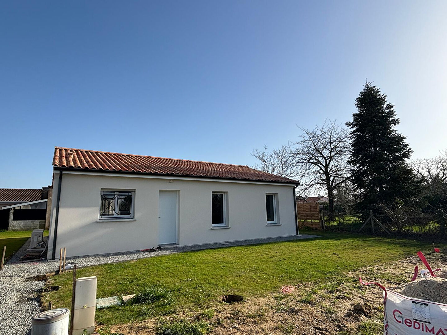 Maison neuve fraichement livrée économique en énergie, comprenant séjour/ cuisine aménagée et équipée, trois chambres avec dressings, wc indépendant, chauffage par climatisation reversible , jardinet clos avec abri de jardin. Libre immédiatement;