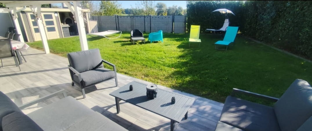 À l'extérieur, le terrain de 747 m² accueille une terrasse avec pergola et un abri de jardin équipé d'un four à pizza et d'un barbecue. De quoi profiter pleinement des beaux jours et organiser des moments conviviaux.