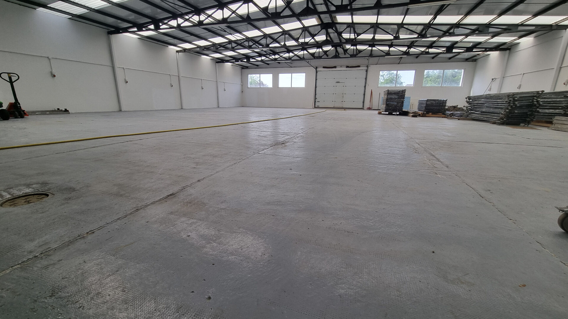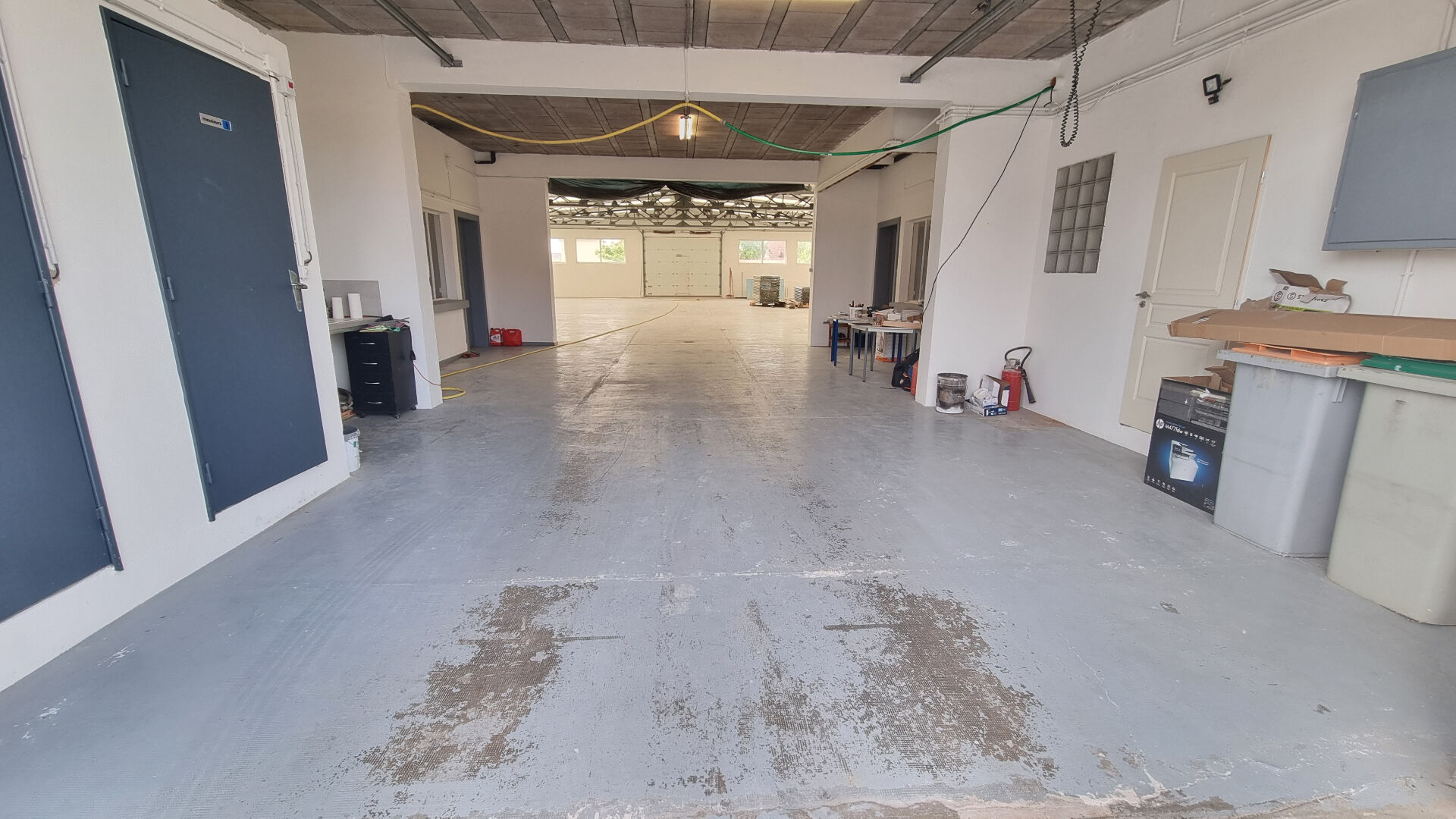 Un entrepôt de 370 m² avec une entrée spacieuse de 80 m2 donnant sur :