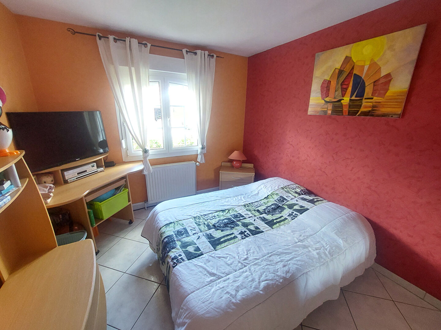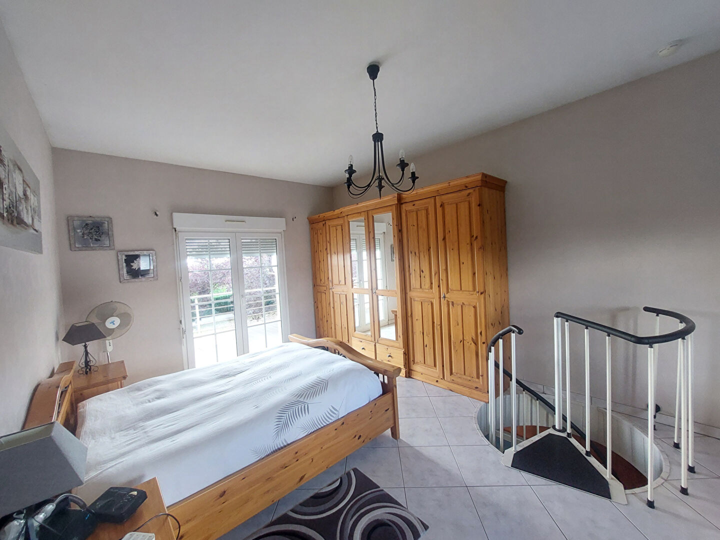 Une grande chambre traversante, bénéficiant d'un accès direct à une magnifique terrasse couverte, idéale pour créer un espace détente ou simplement profiter d'une vue agréable en toute tranquillité.