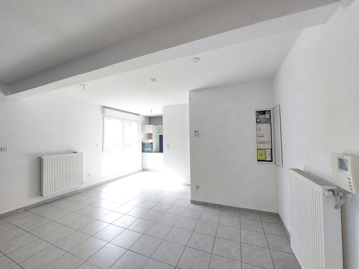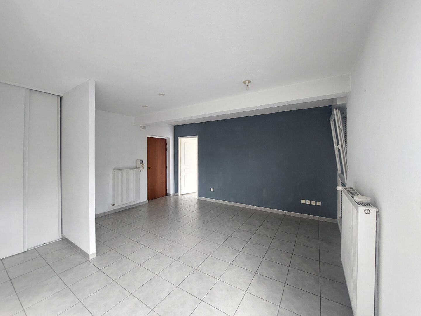 L' appartement se compose : une entrée avec placards coulissant, une pièce de vie ouvert sur cuisine équipée, une grande chambre lumineuse et une salle d'eau avec meuble et wc.