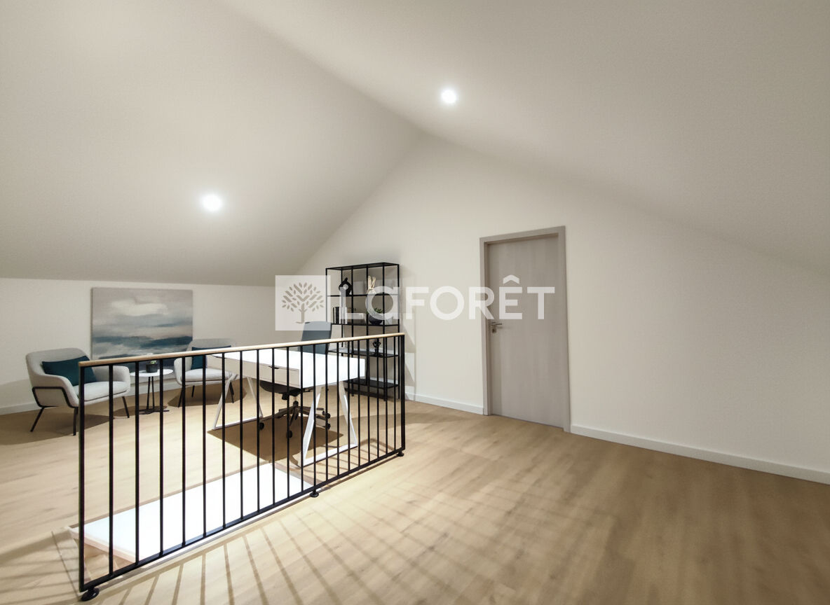 À l'étage, un bureau est déjà aménagé. Une quatrième chambre peut facilement être créée. Environ 78 m² restent encore à exploiter selon vos besoins : salle de jeux, espace détente ou autre projet. Les arrivées d'eau, d'électricité et de chauffage sont déjà en place.