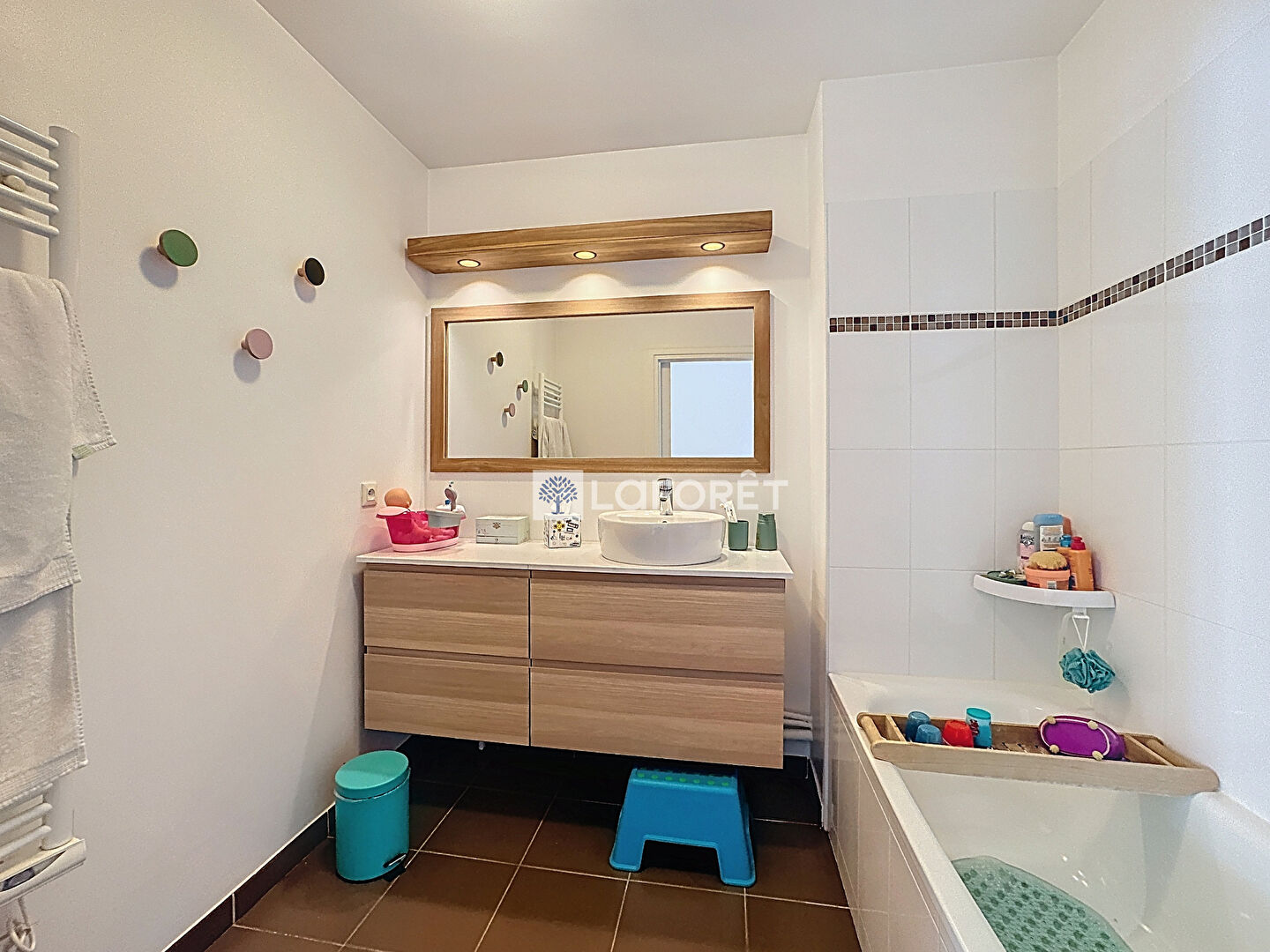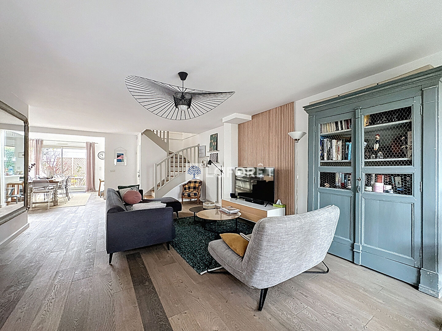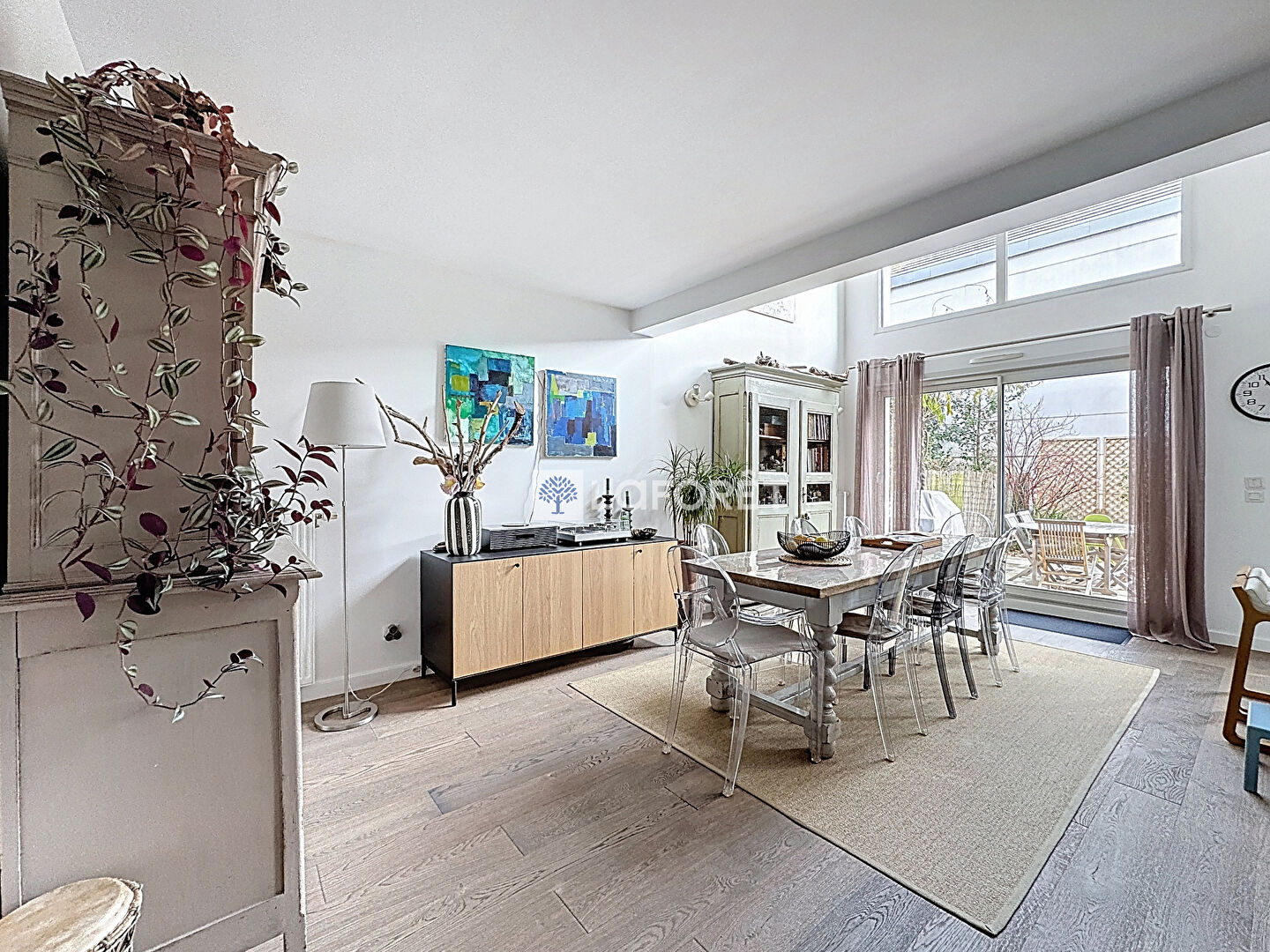 Au rez-de-chaussée, vous découvrirez une pièce de vie séjour/salle à manger de 50 m², lumineuse, donnant directement accès au jardin, une cuisine aménagée et équipée, un WC indépendant, un espace de rangement avec placard intégré ainsi qu'un accès au garage.