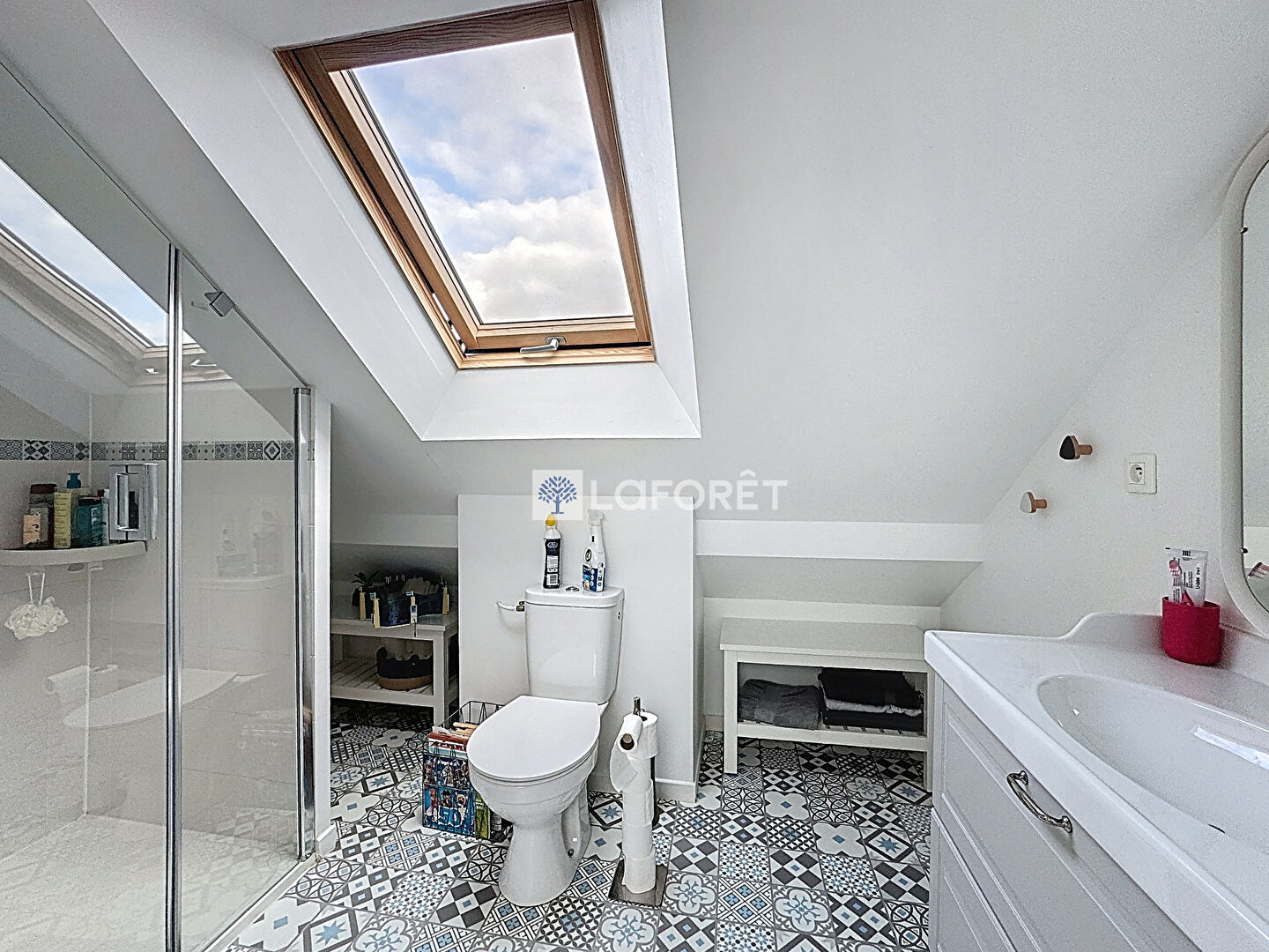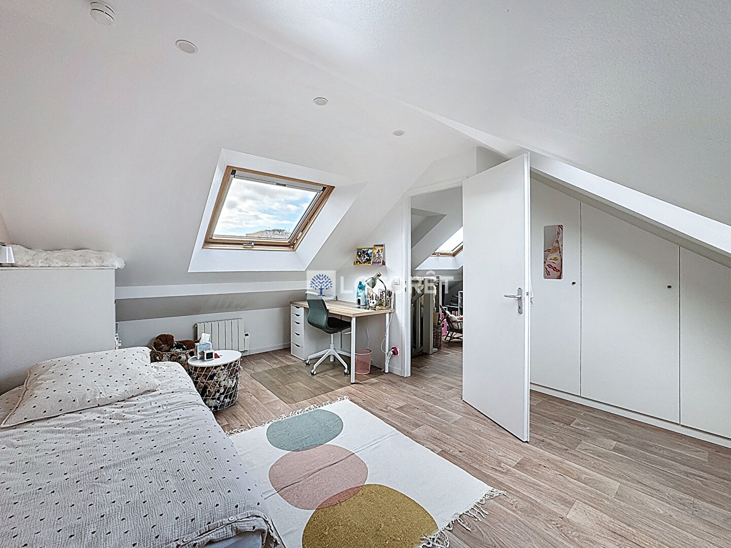 Au deuxième étage, les combles ont été aménagés en deux belles chambres avec placards, spacieuse et lumineuse, un dégagement et une salle d'eau avec WC.