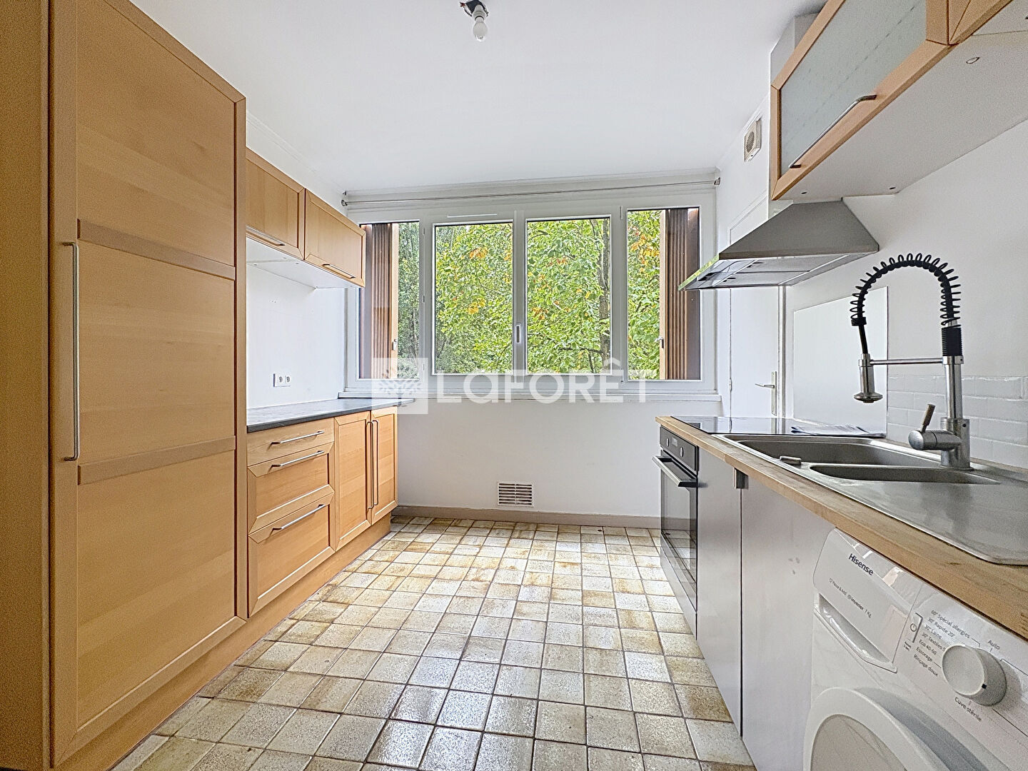 Appartement 3 pièces, situé au 2ème étage avec ascenseur, comprenant : un double séjour avec un grand balcon, deux chambres, une cuisine aménagée séparée avec un cellier, une salle de bains, et un WC séparé.