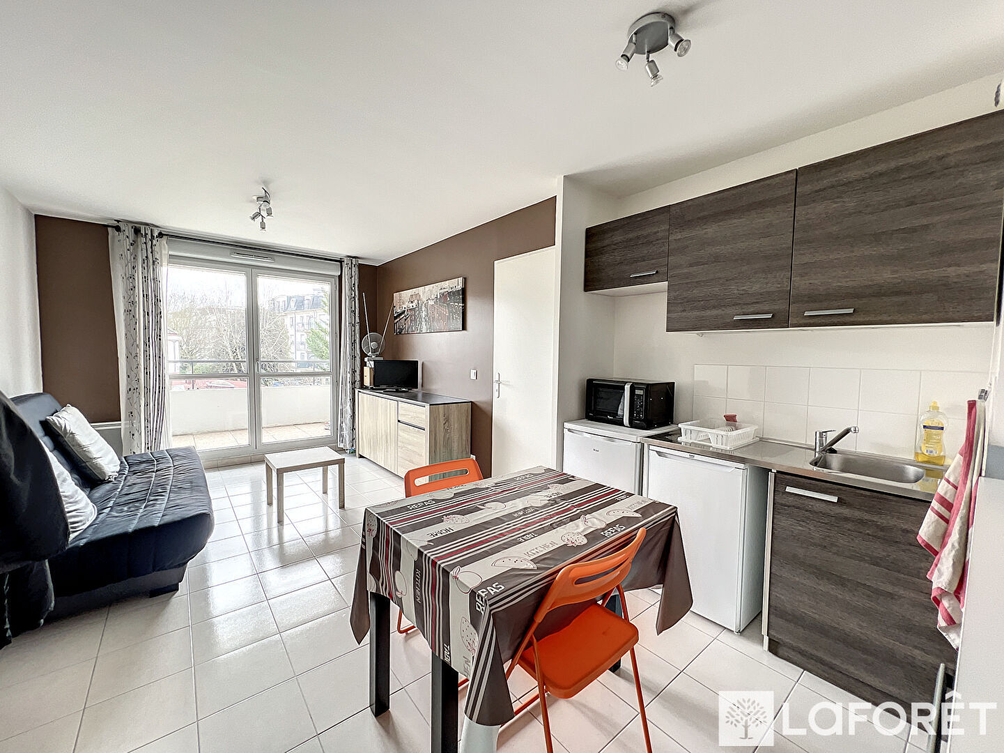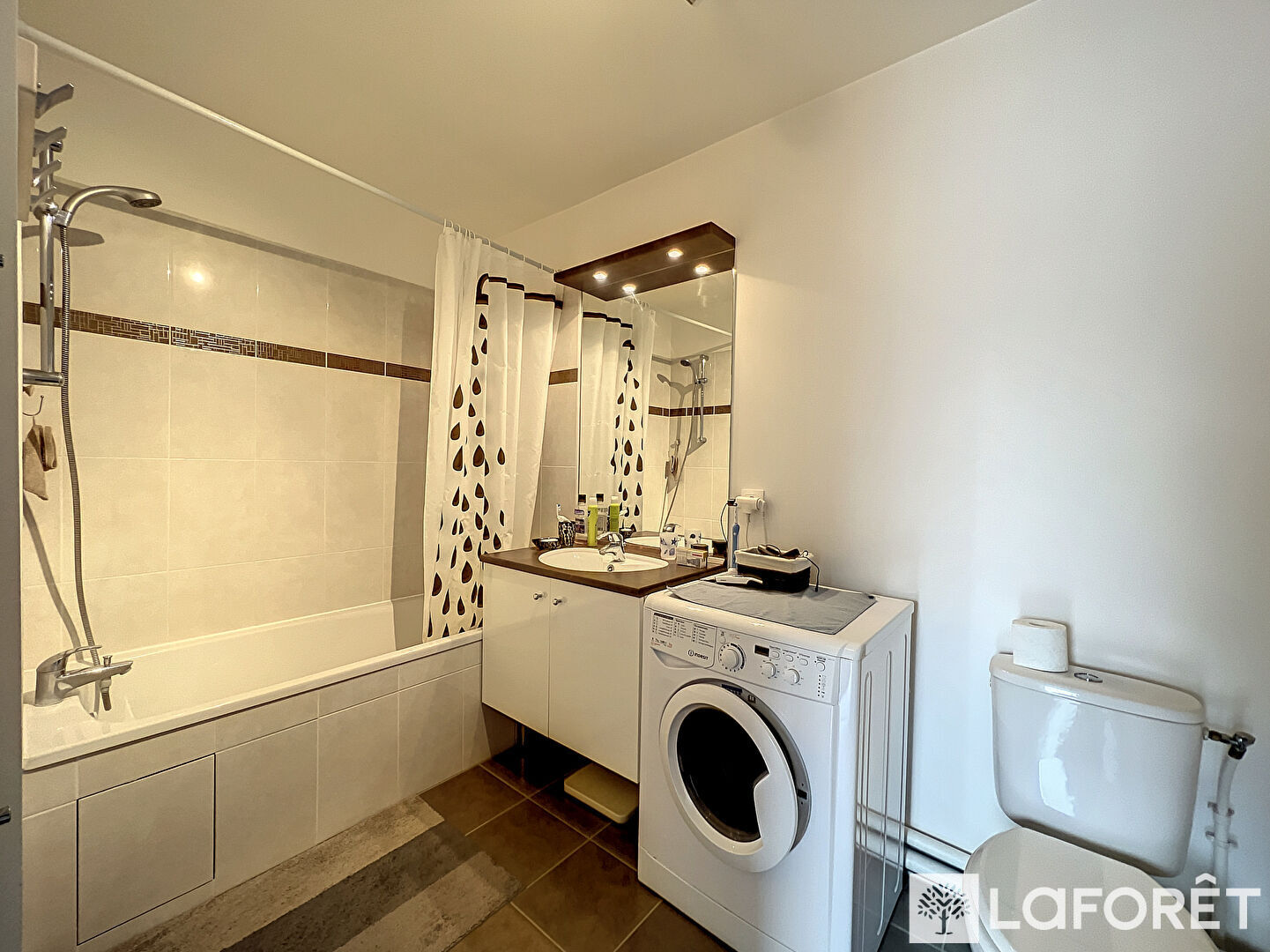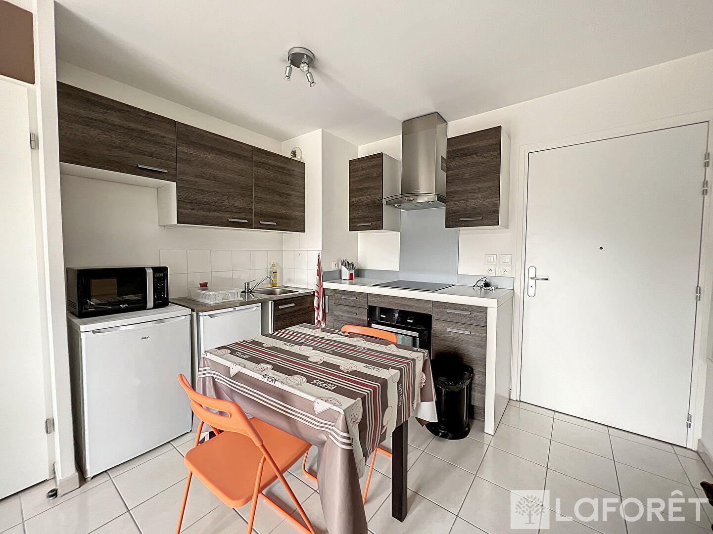 Appartement 2 pièces au 1er étage d'une résidence de 2012, comprenant : une pièce principale donnant sur balcon exposé Sud-Est, une cuisine équipée et aménagée, une chambre et une salle d'eau avec WC.