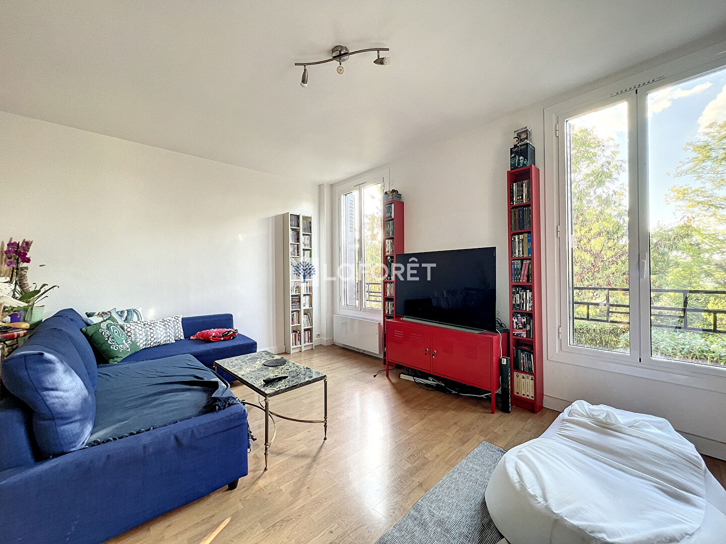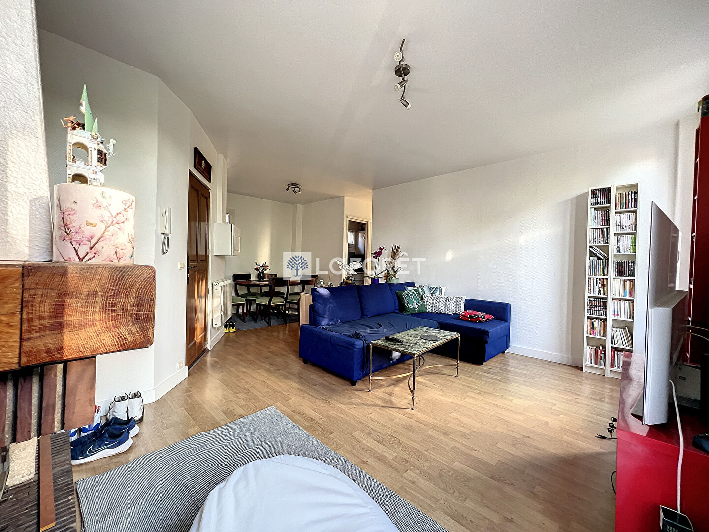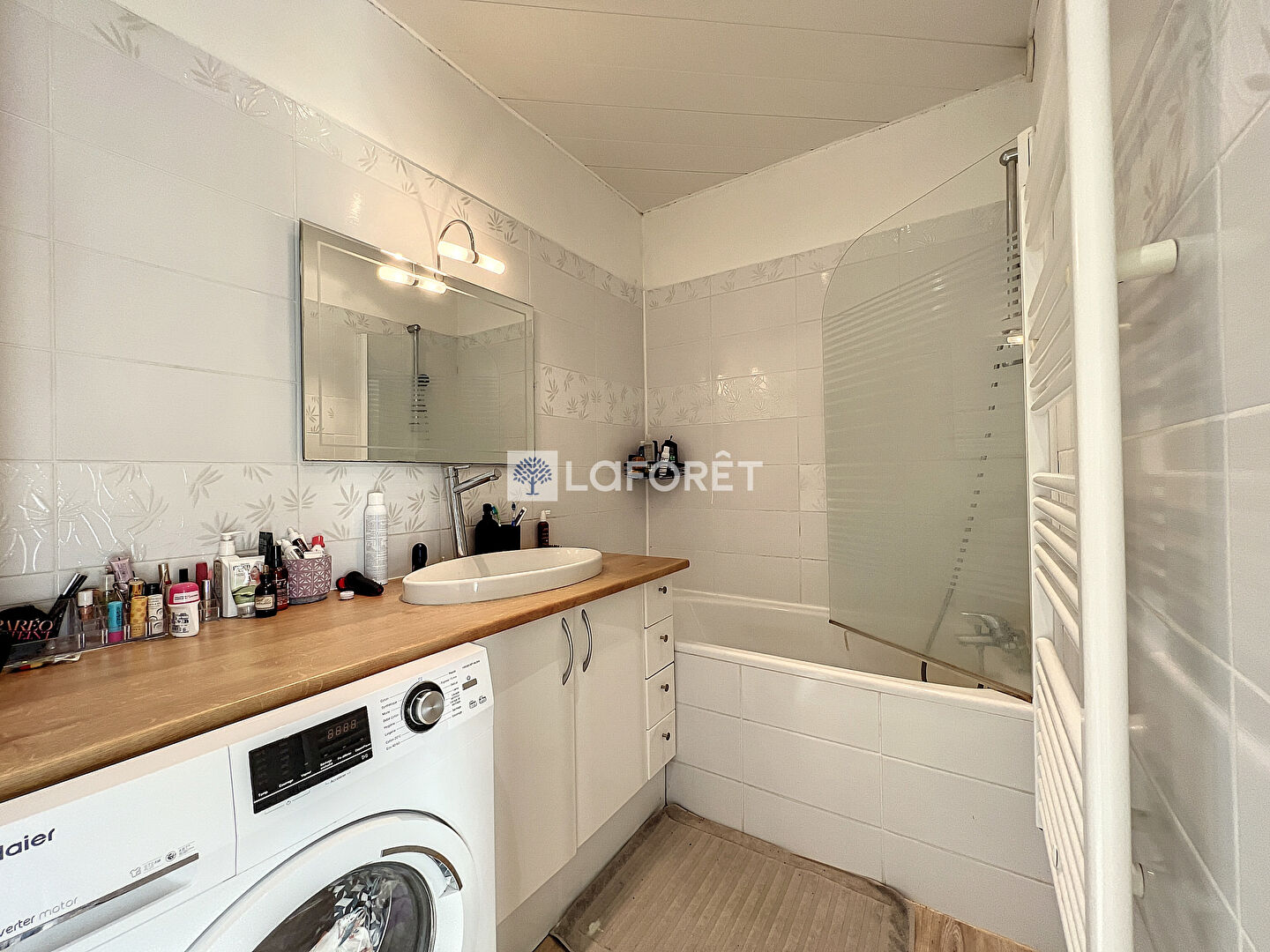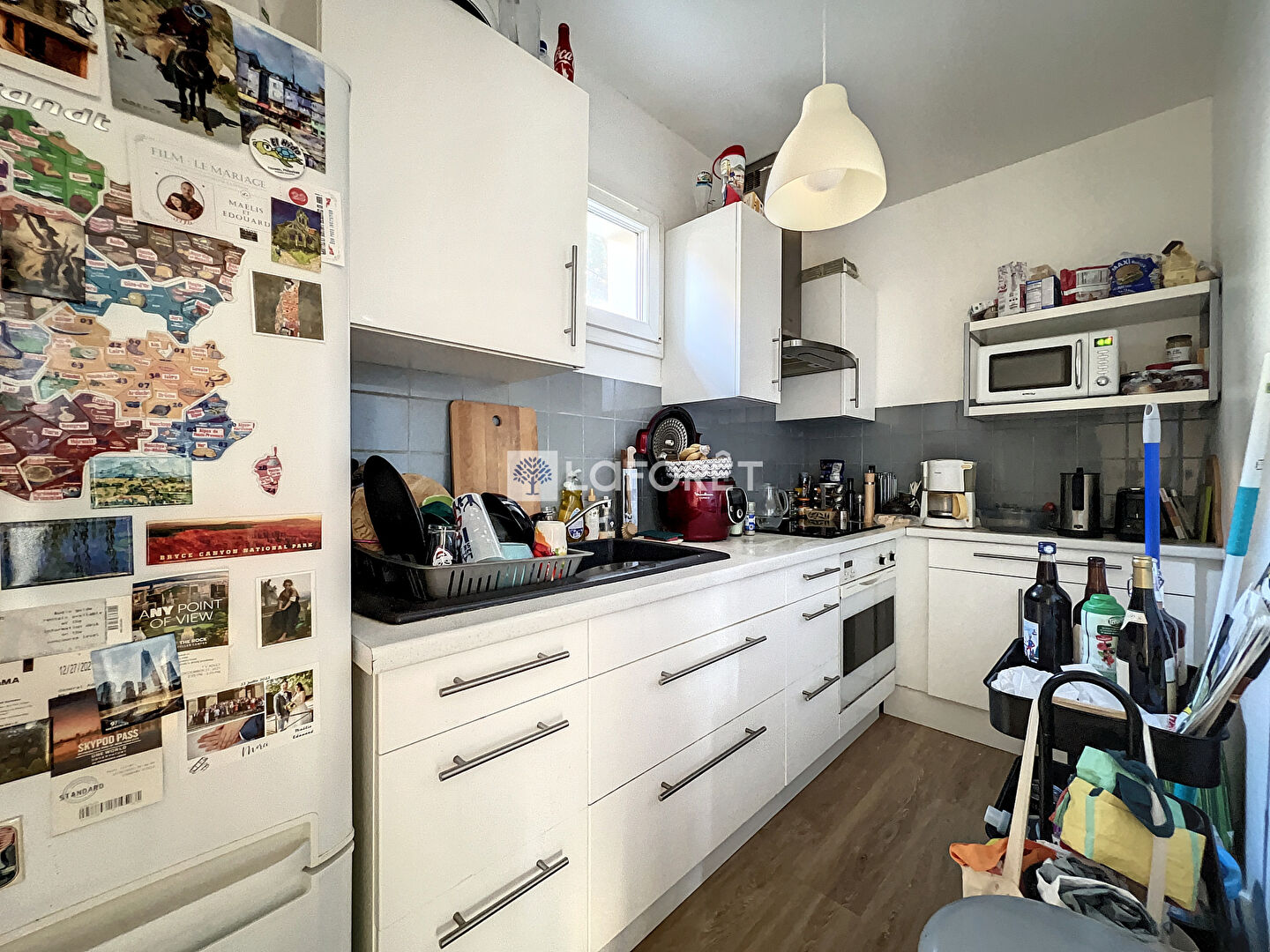 Appartement 3 pièces situé au 1er étage d'une petite copropriété au calme, comprenant : une pièce principale avec cheminée décorative, une cuisine aménagée et équipée, deux chambres avec placards, une salle de bains et un WC séparé.