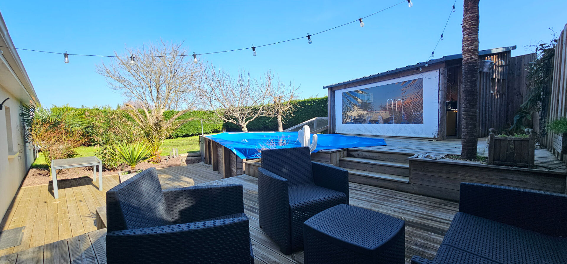 Vous serez séduit par son extérieur sans vis-à-vis, entièrement clos, comprenant une piscine, un pool house et de belles terrasses en bois.
