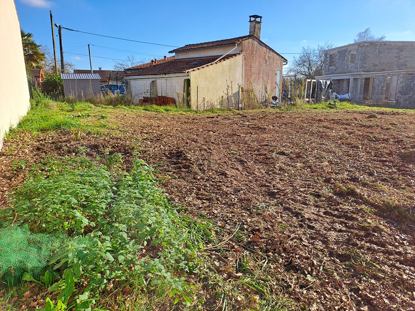 Terrain non viabilisé, eau et électricité dans la rue.