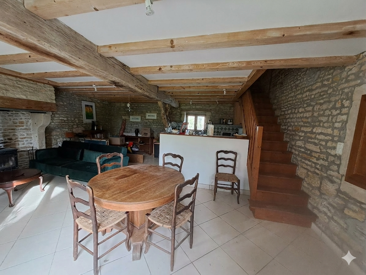 De plus, une seconde maison pouvant servir de gîte comprenant au rez-de-chaussée: une pièce de vie avec un poêle à bois et une cuisine ouverte.