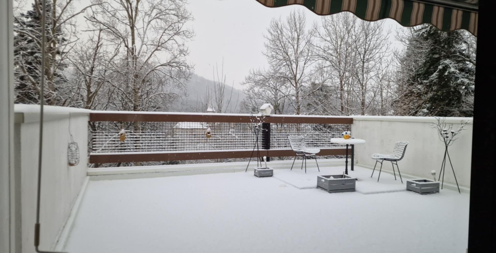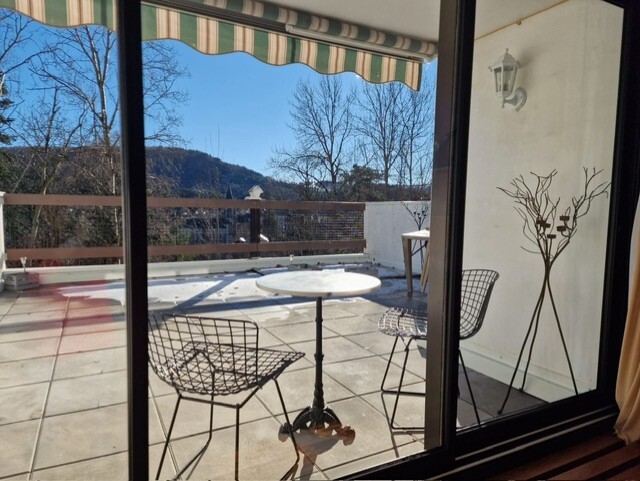 Il bénéficie d'une très agréable terrasse donnant sur les montagnes.
