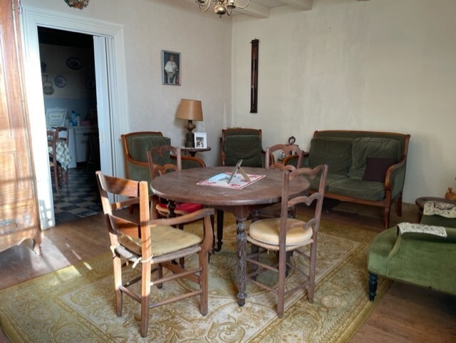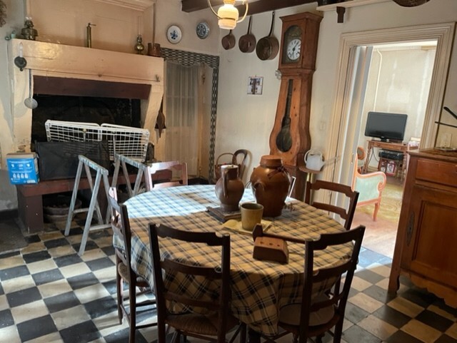 Le rez-de-chaussée se compose d'une entrée, d'un dégagement, d'une cuisine, d'une chambre avec dressing, d'une salle d'eau avc WC, d'un salon et d'une cuisine ancienne avec cheminée.