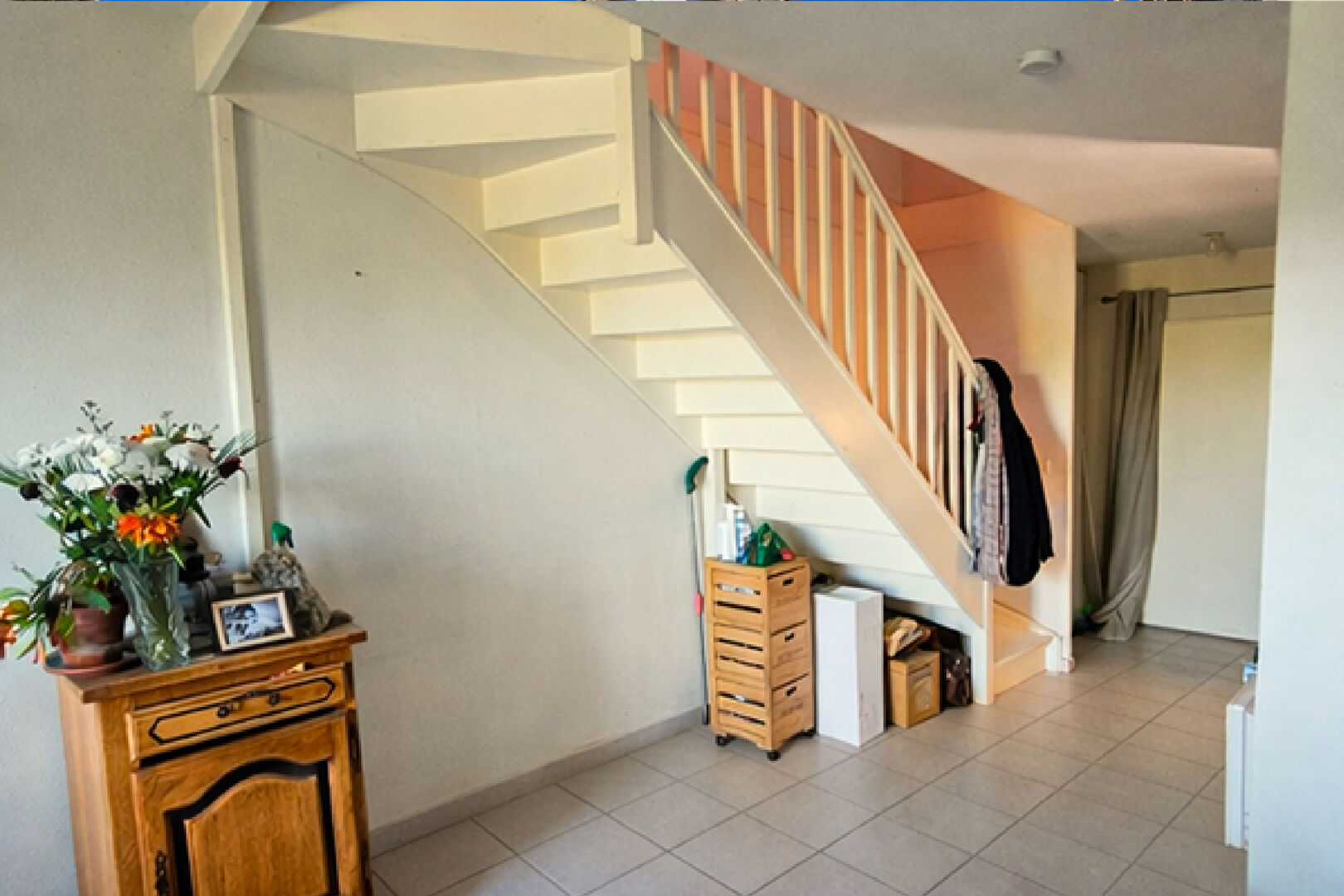 Il se compose, au rez-de-chaussée, d'une entrée, d'une cuisine aménagée avec buanderie, et d'un séjour ouvrant sur un jardinet avec terrasse.