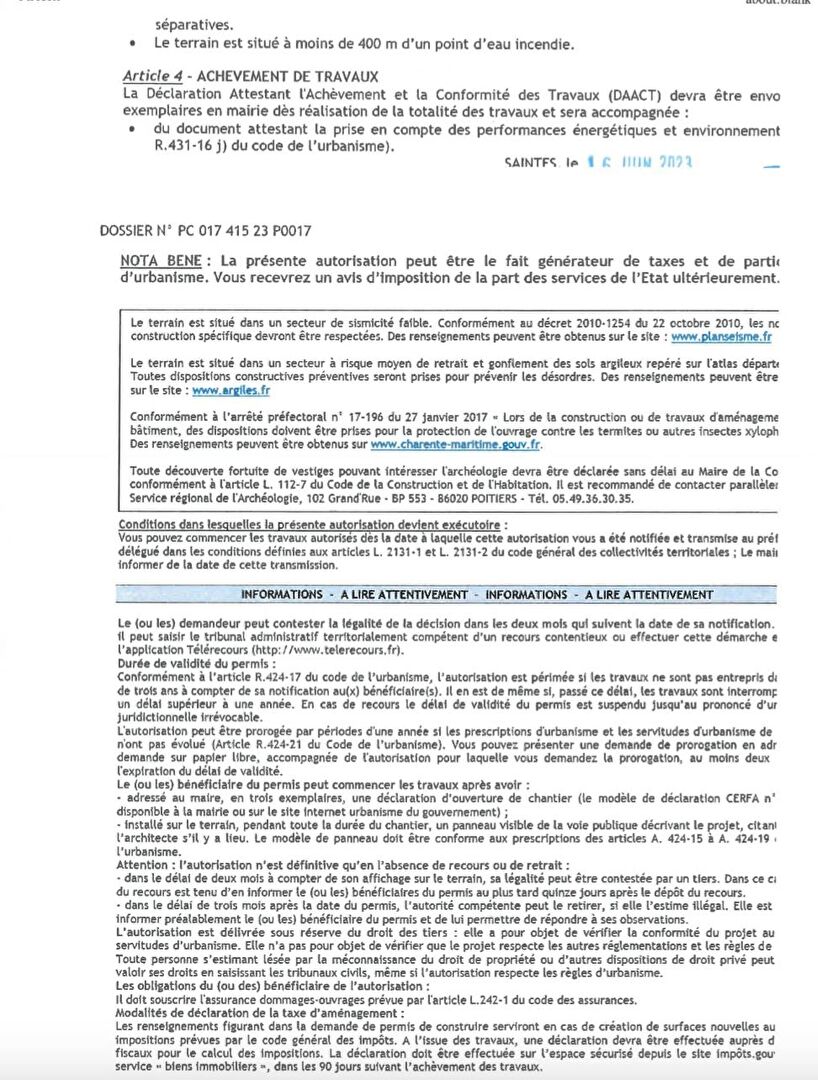 Permis de construire accepté en date du 16/06/2023 avec les RT 2020.