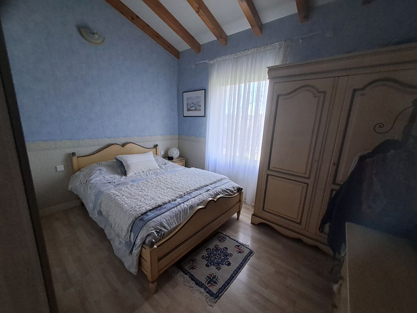 A l'étage: une chambre avec une salle d'eau.