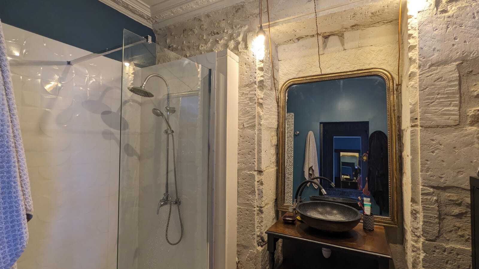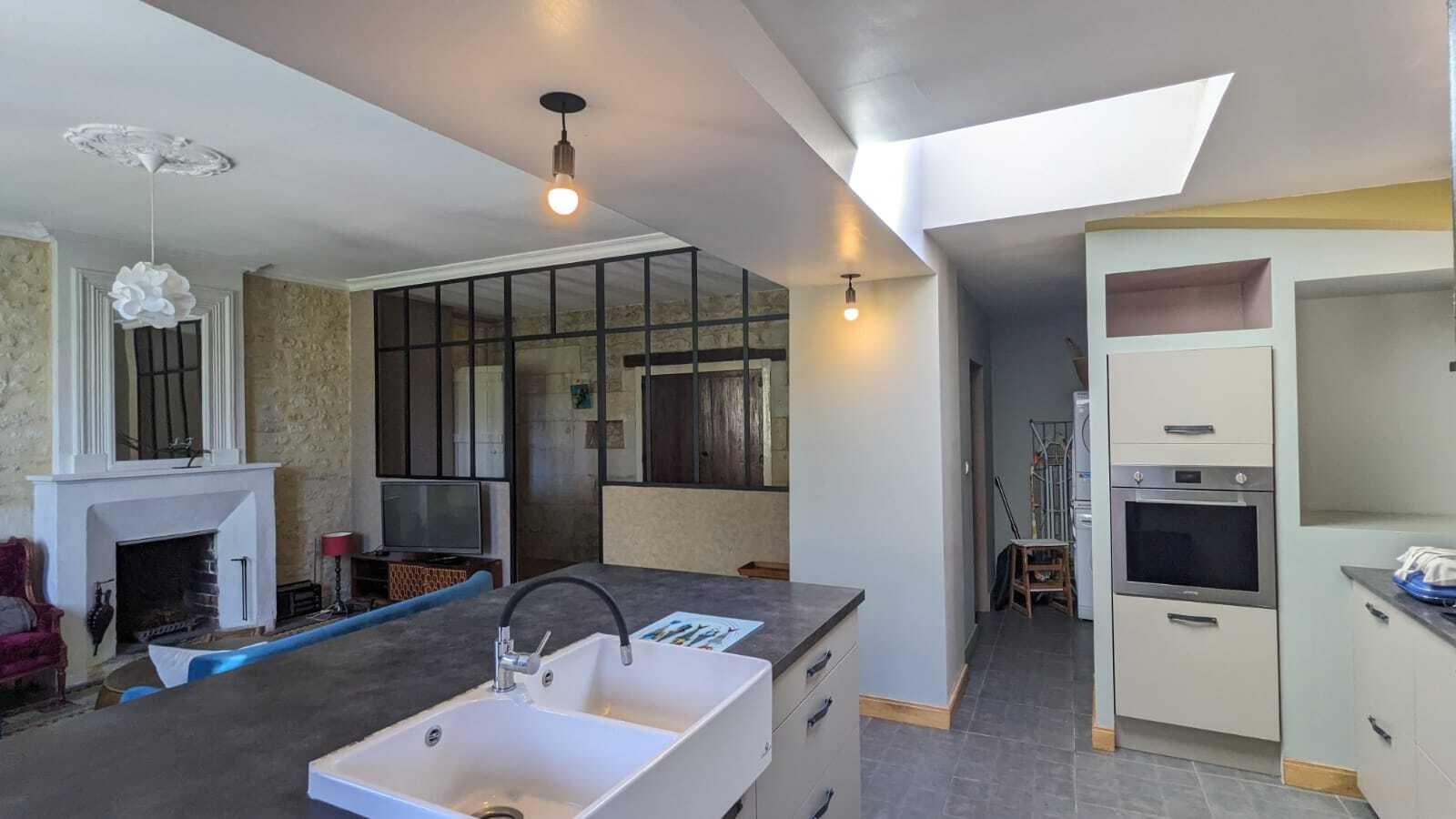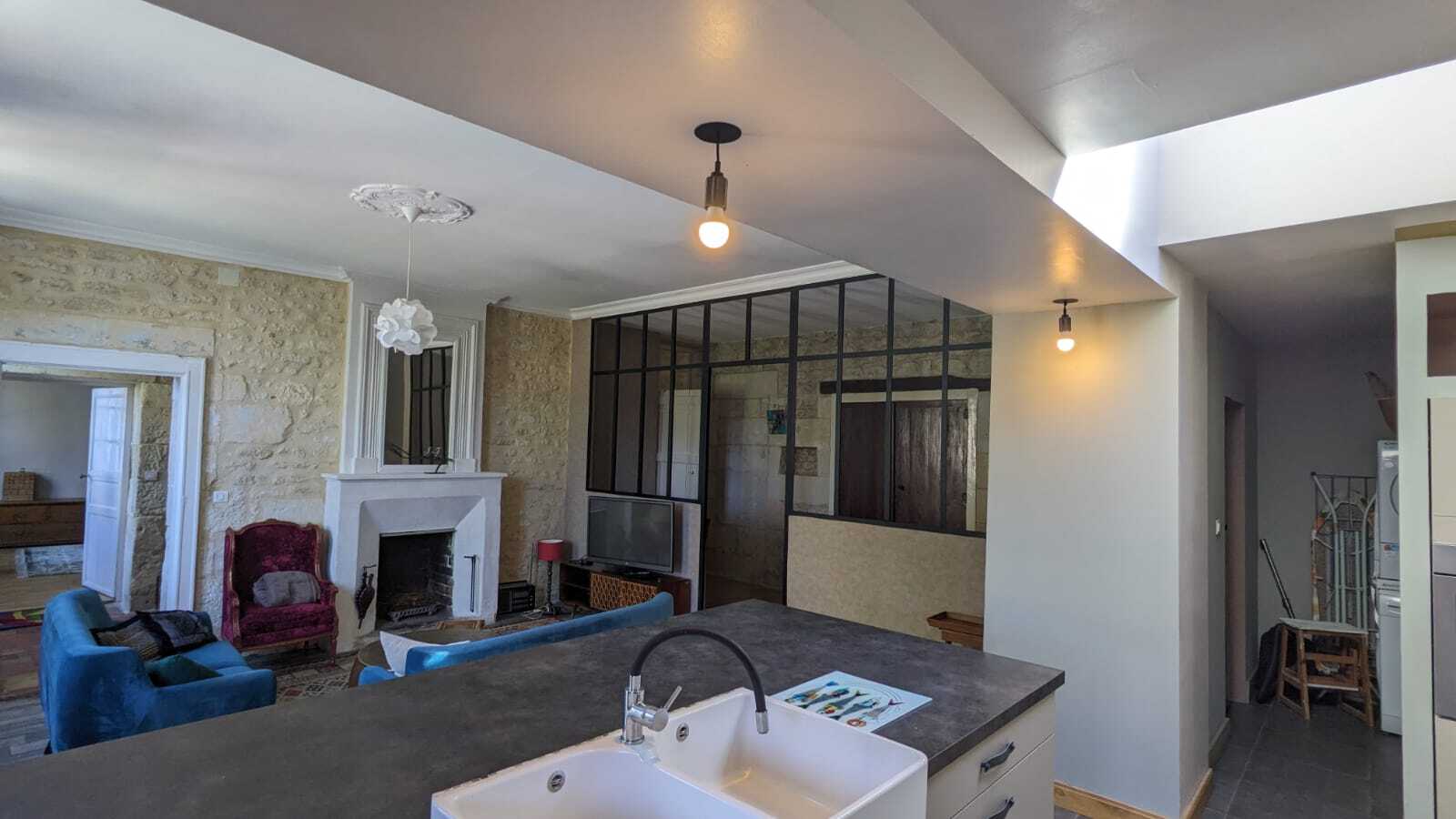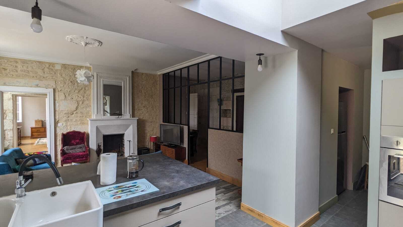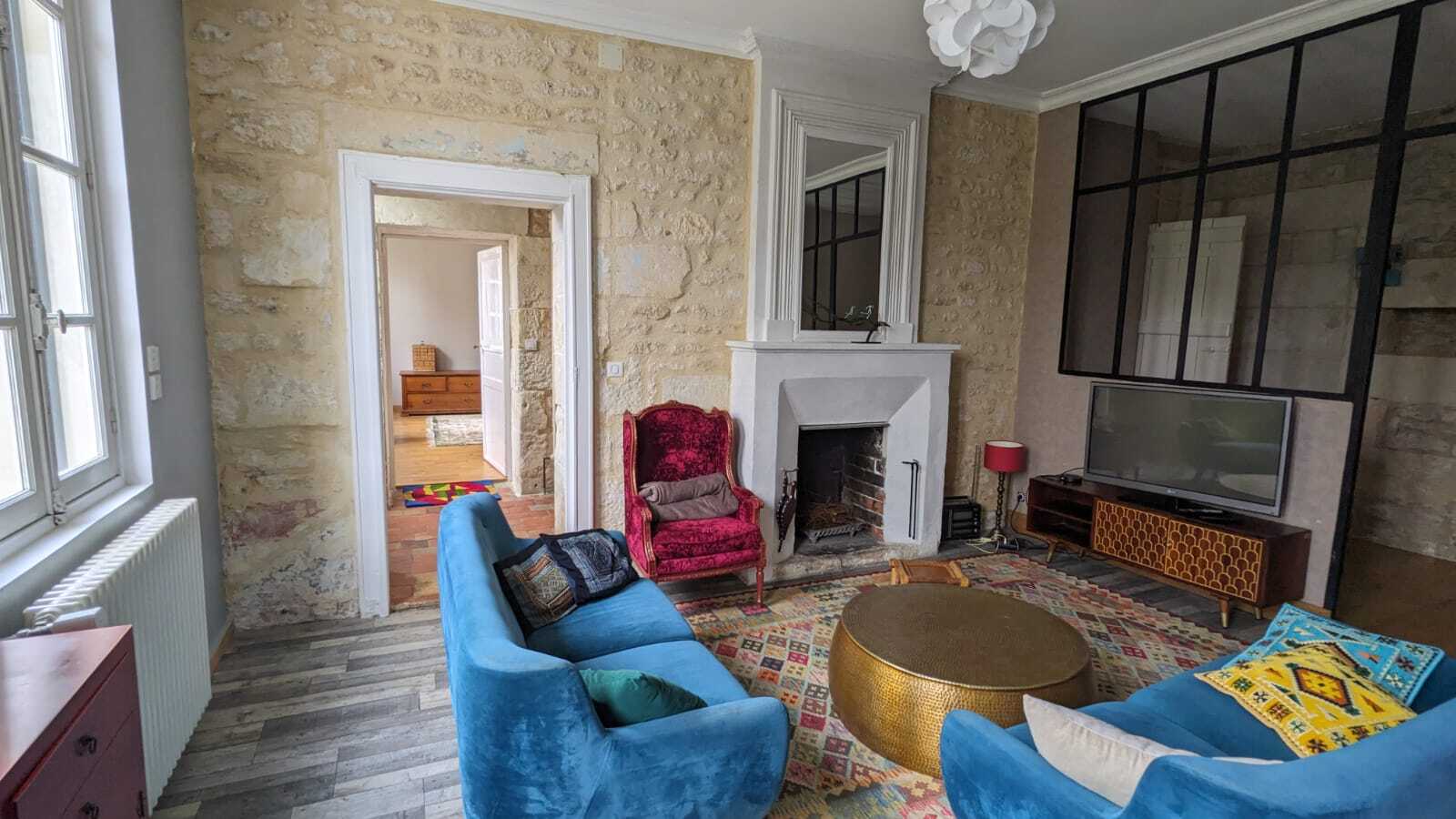 Tomettes anciennes, planchers, hauteur de plafond et cheminées (dont une qui fonctionne au RDC), se confondent avec un style contemporain.
