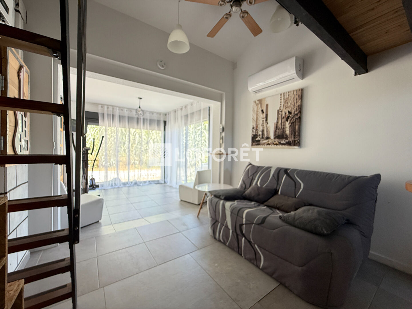 Implantée sur un terrain arboré de 698 m², agrémenté de plantes méditerranéennes, elle offre un cadre de vie agréable et ensoleillé et équipée de son cabanon.