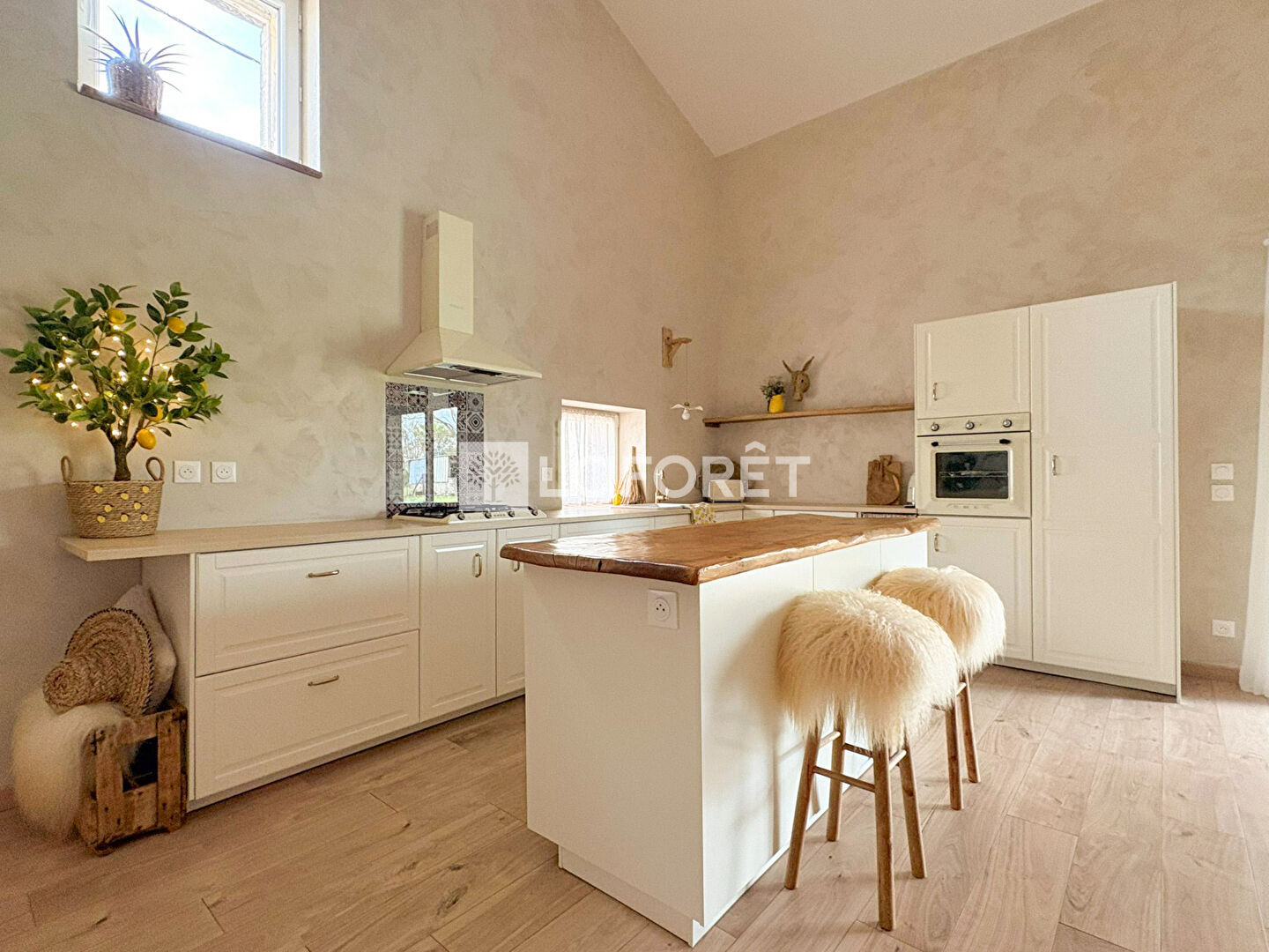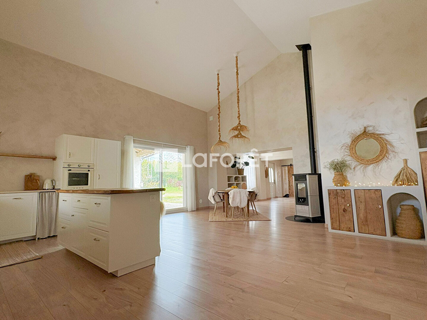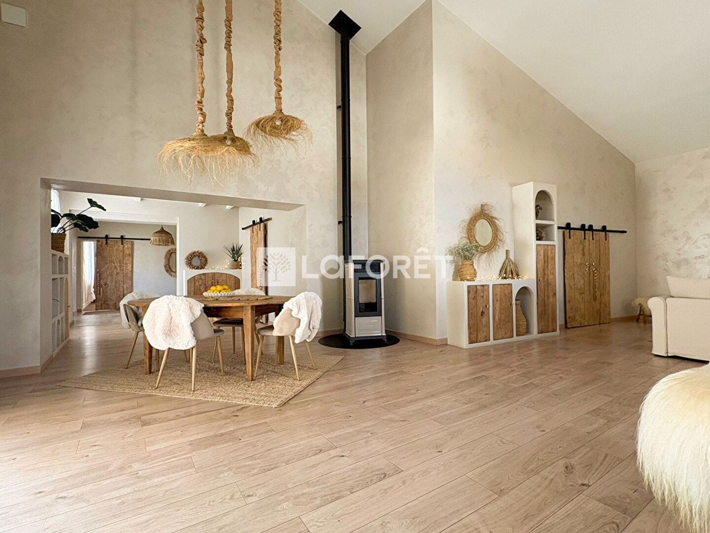 En rez-de-chaussée, vous serez séduit par une ambiance soignée, mettant en valeur des matériaux de qualité, des rangements intégrés et une décoration aux lignes contemporaines. La pièce de vie constitue un véritable atout avec presque 80m² et une belle hauteur sous plafond, comprenant un poêle à pellets programmable. L'espace, parfaitement structuré, accueille une cuisine aménagée et équipée, ouverte sur un salon et un espace salle à manger. Vous trouverez également un cellier, une salle d'eau avec wc, un dressing et une chambre spacieuse ce qui offre une véritable vie de plain pied.