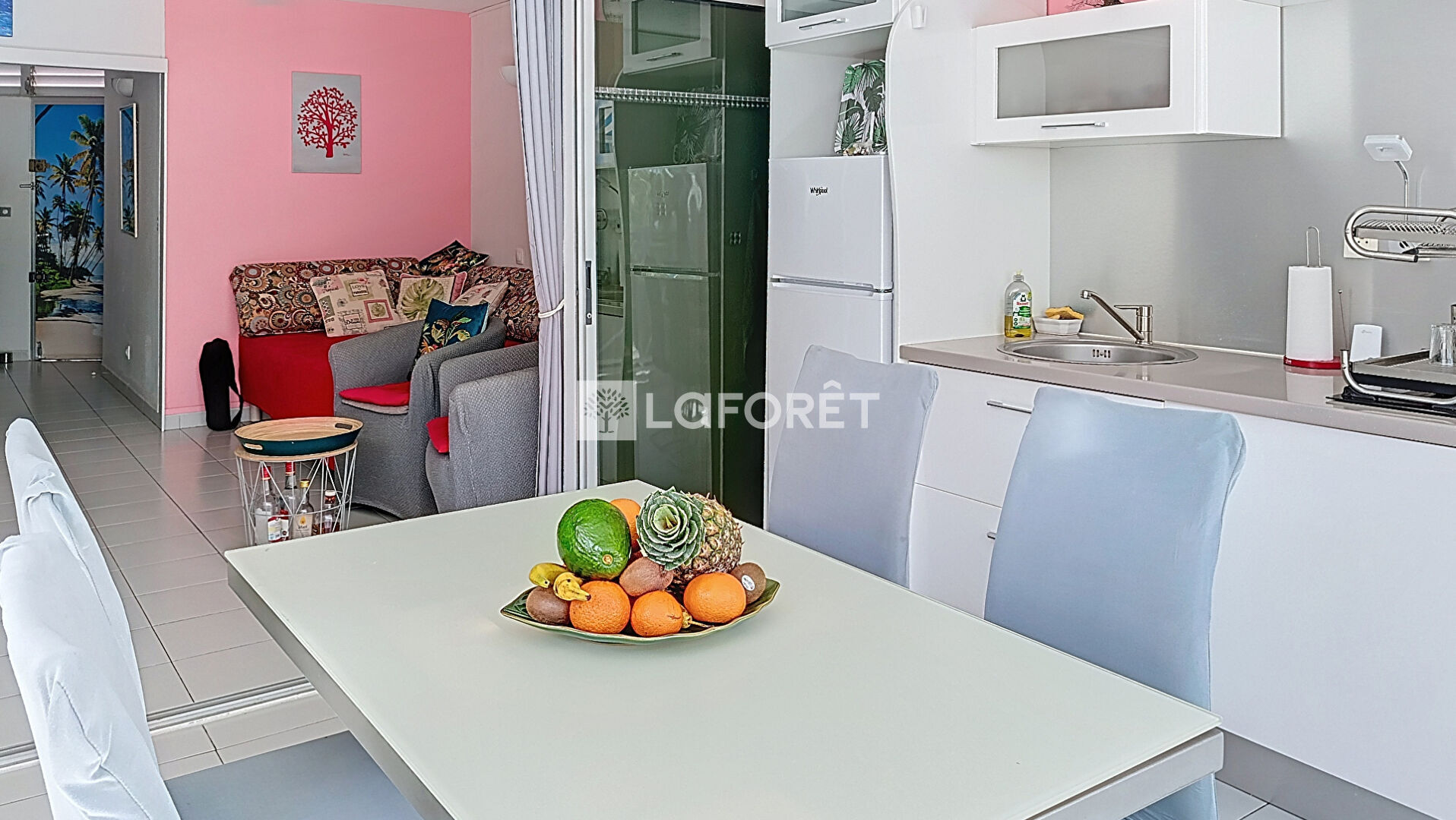 On résume : Découvrez ce joli T2 , tout équipé, situé sur la marina et en face du golf de Saint-François, renseignez vous en appelant l'agence Laforêt de Saint-François au 0590 41 60 60 pour organiser une visite !
