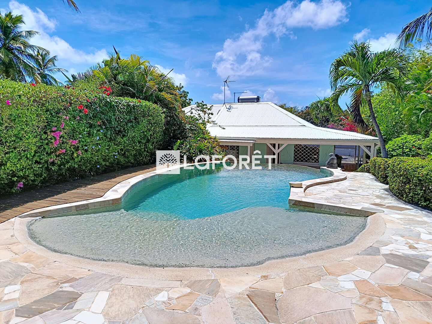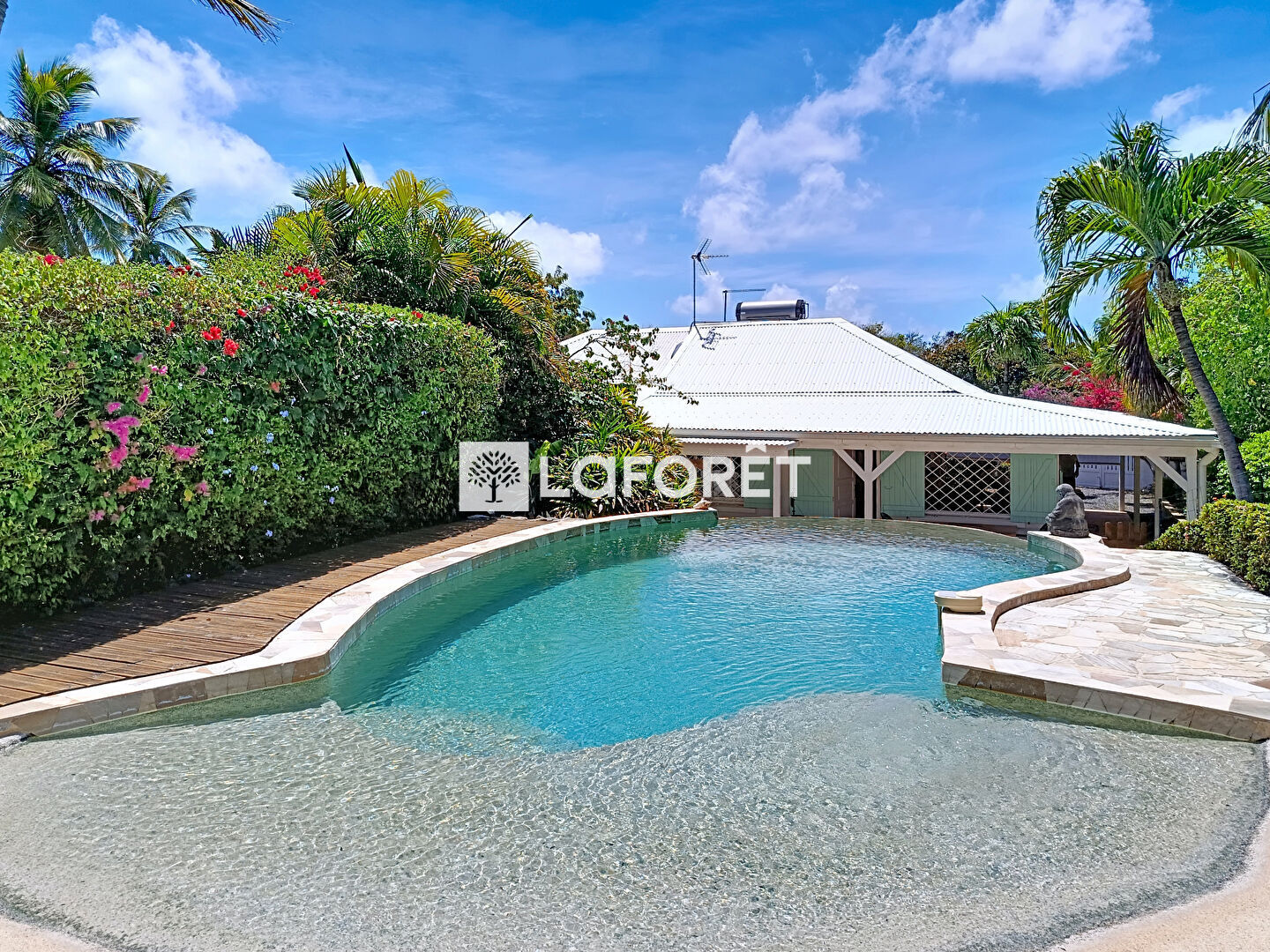 En résumé : Laforêt vous propose cette villa t3 de charme avec piscine et son jardin arboré dans un environnement prisé de Saint-François qui correspondra parfaitement pour un projet touristique.