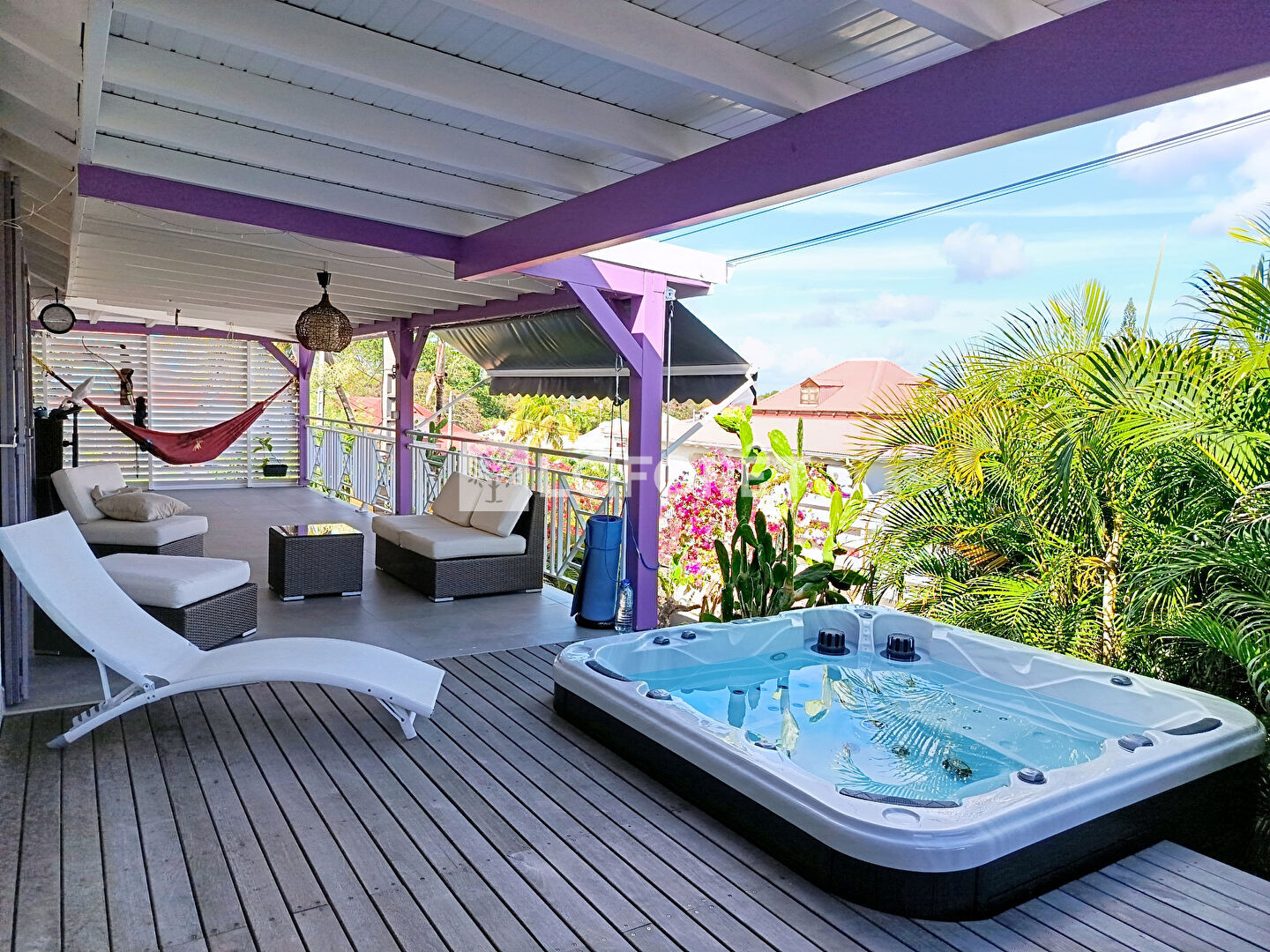 Un Jacuzzi intégré sur le deck de la terrasse permet de profiter de l'extérieur dans le calme et la sérénité.