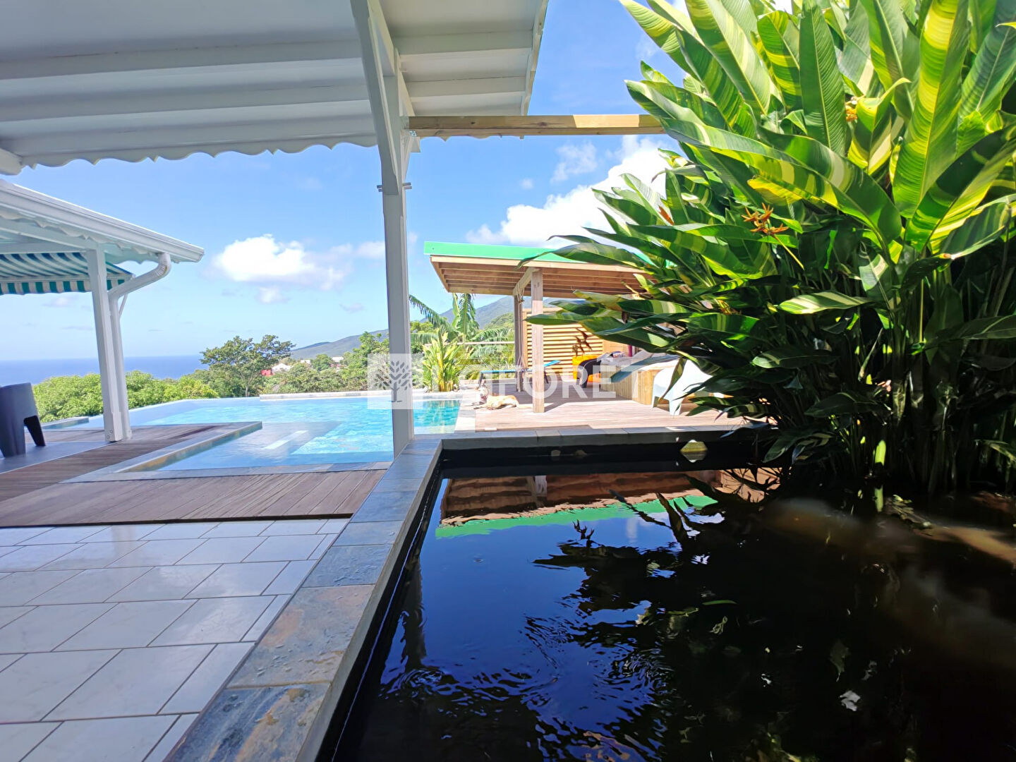 Pour résumer magnifique ensemble immobilier de 300m2 sur 2400m2 de terrain avec vue panoramique sur les Saintes, terrasse 190m2, piscine à débordement avec 4 gites rénovés offrant confort et potentiel locatif.