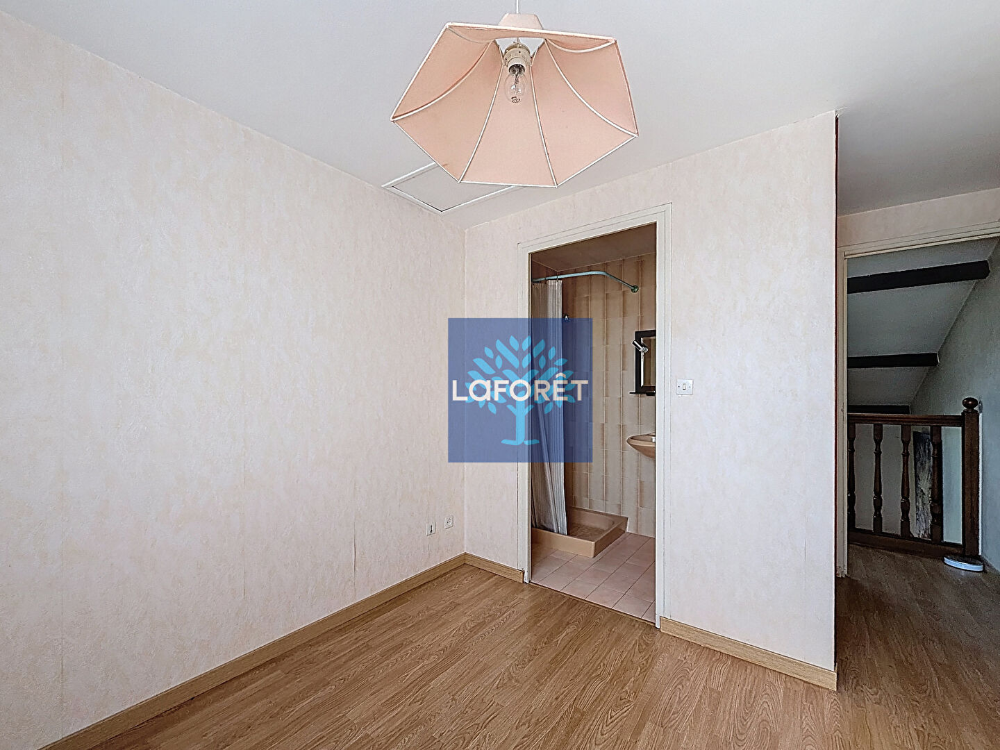 À l'étage, vous trouverez une chambre avec sa salle d'eau.