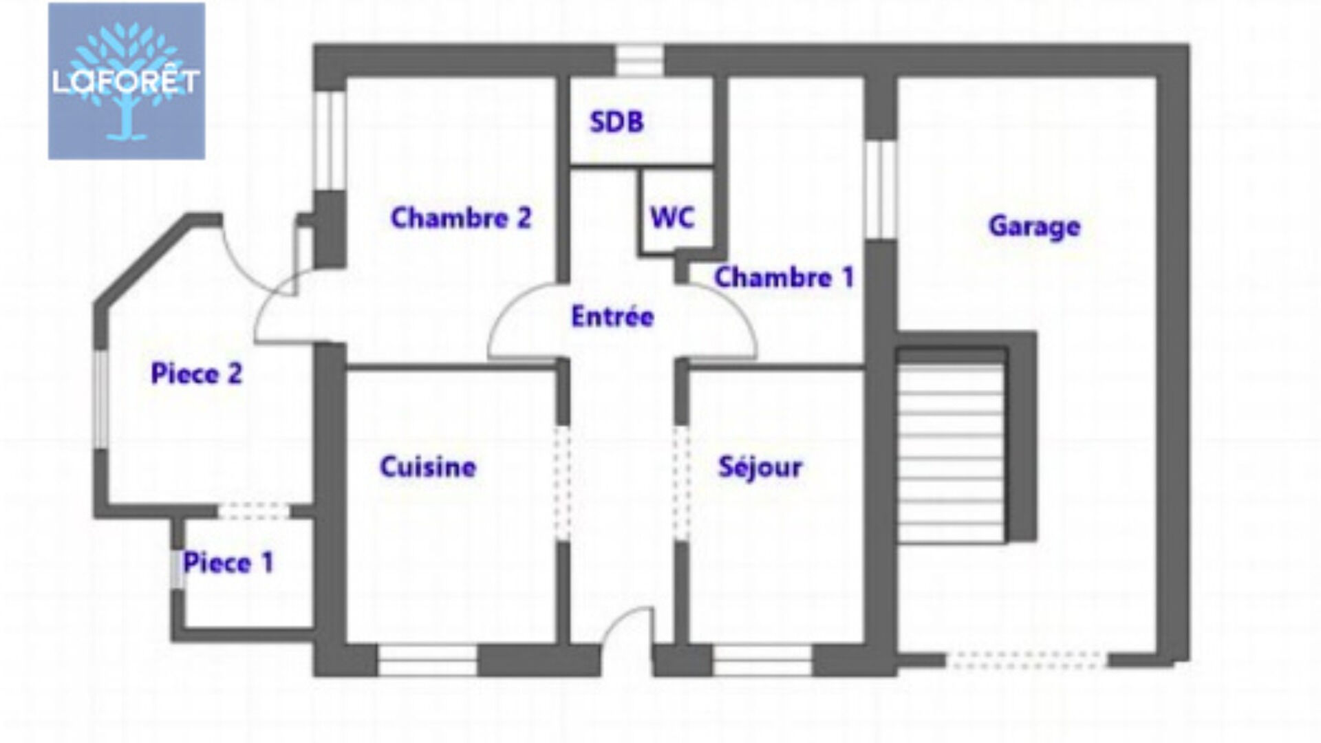 La maison s'ouvre sur une entrée avec dégagement, distribuant une cuisine semi-ouverte, un séjour, deux chambres, une salle d'eau et un WC. Une buanderie ainsi qu'une pièce annexe complètent l'espace de vie.
