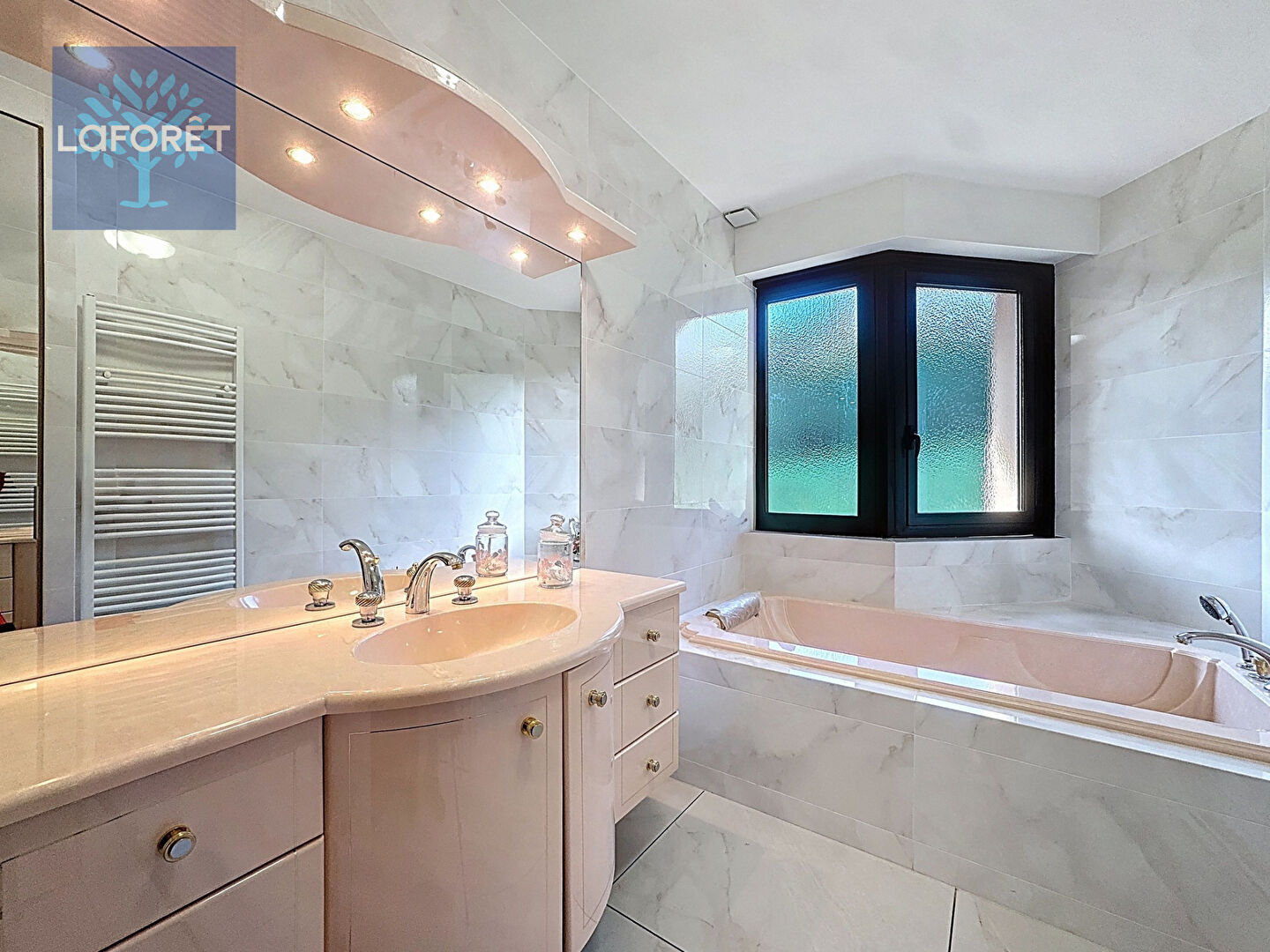 En rez-de-jardin, une grande pièce avec cheminée, dotée d'une arrivée d'eau, peut être aménagée en salle de billard, home cinéma ou salle de sport, complétée par une buanderie, une cave et un garage double à portes motorisées.