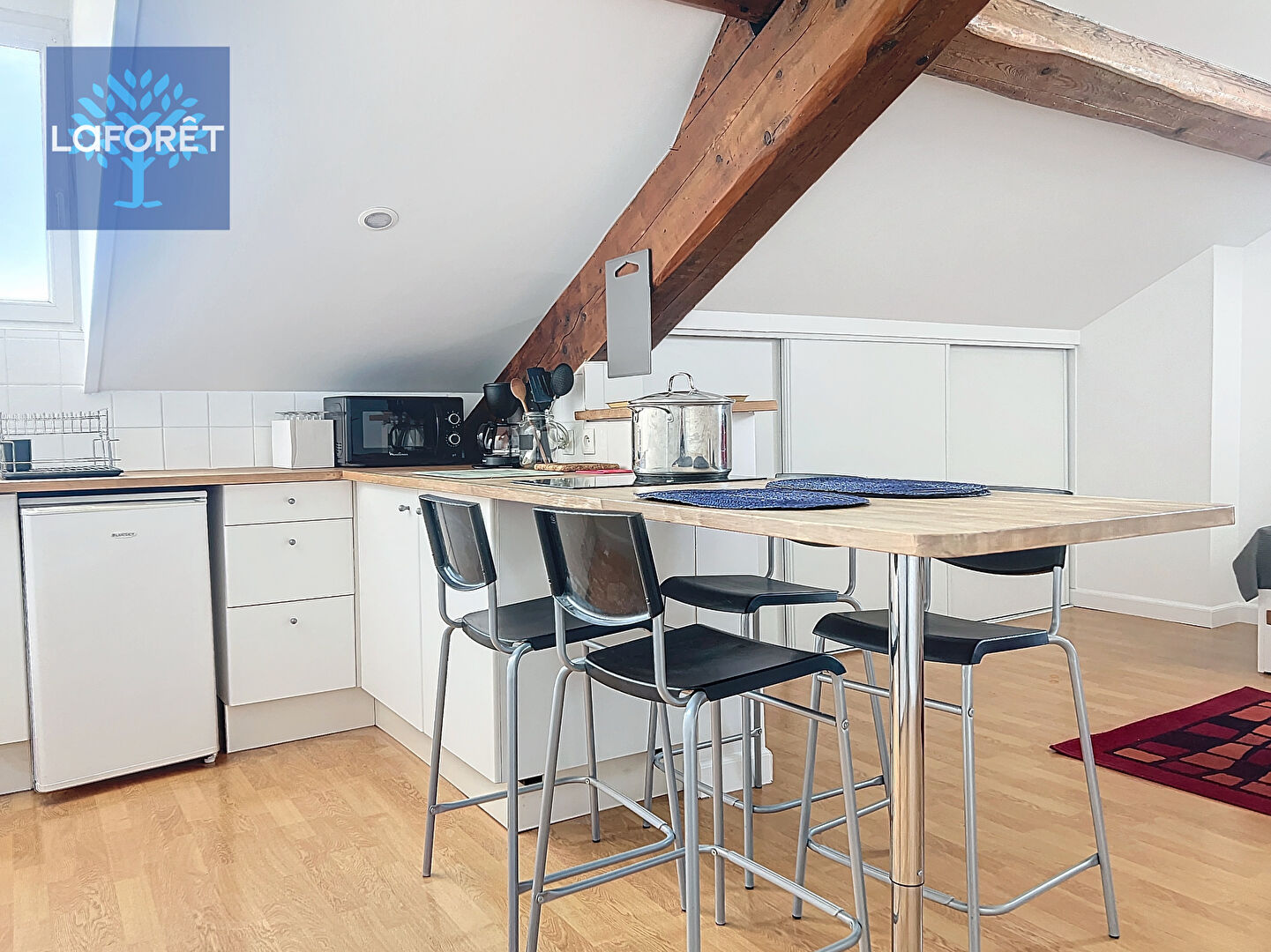 Récemment rénové et entièrement meublé, il se trouve au 5ème et dernier étage sans ascenseur.